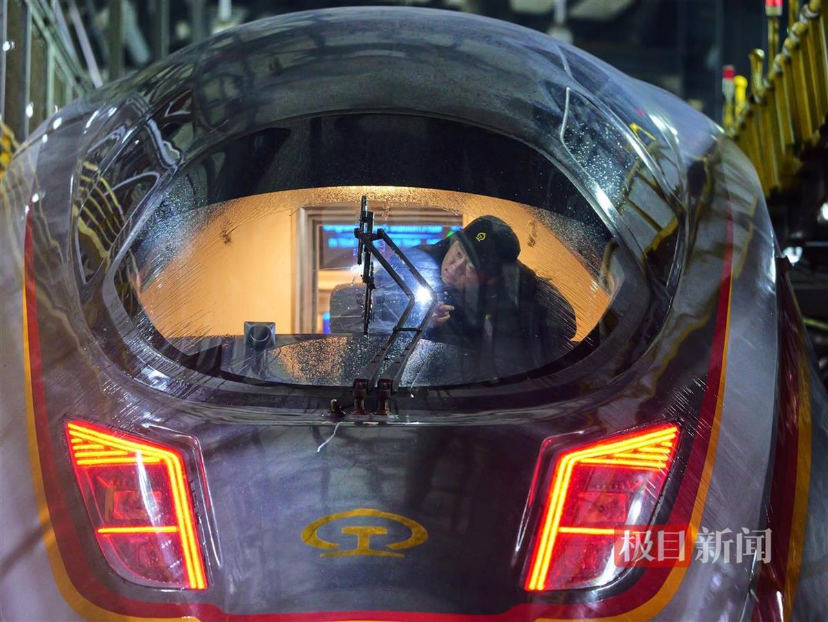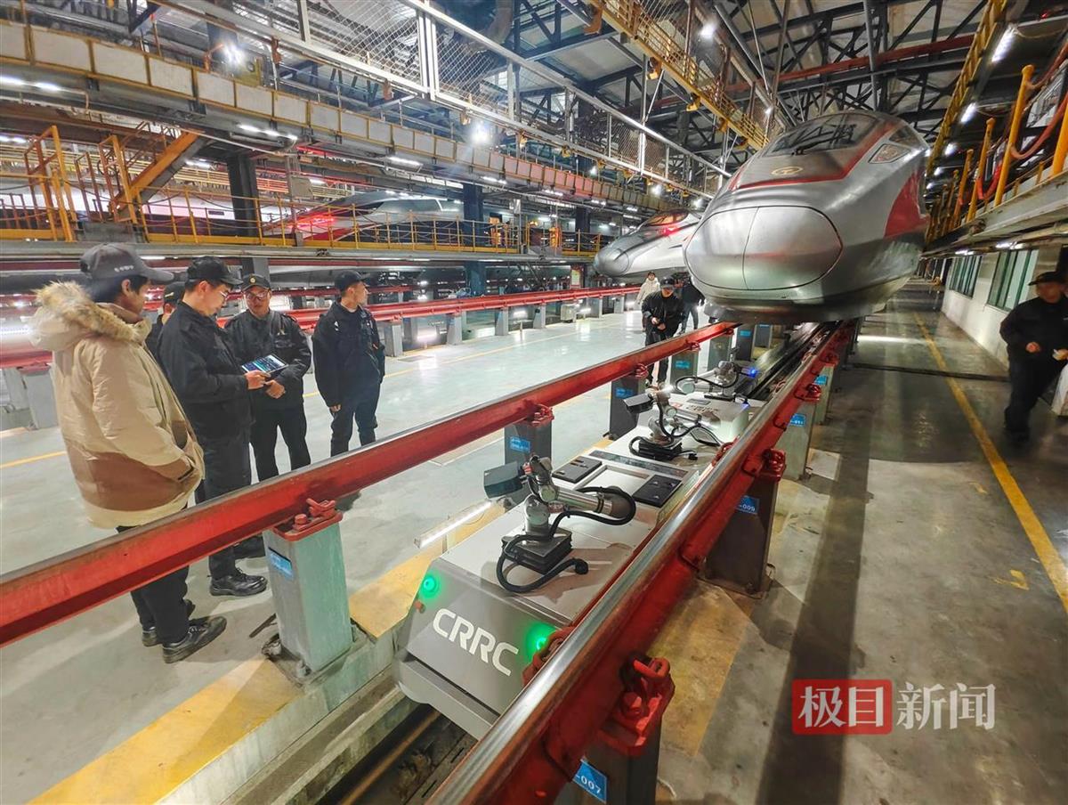 1月13日夜,在华中地区最大的动车组检修基地——武汉动车段,一列列动车组有序“集结”,铁路工作人员正在紧张忙碌地开展各项检修、维护工作。
