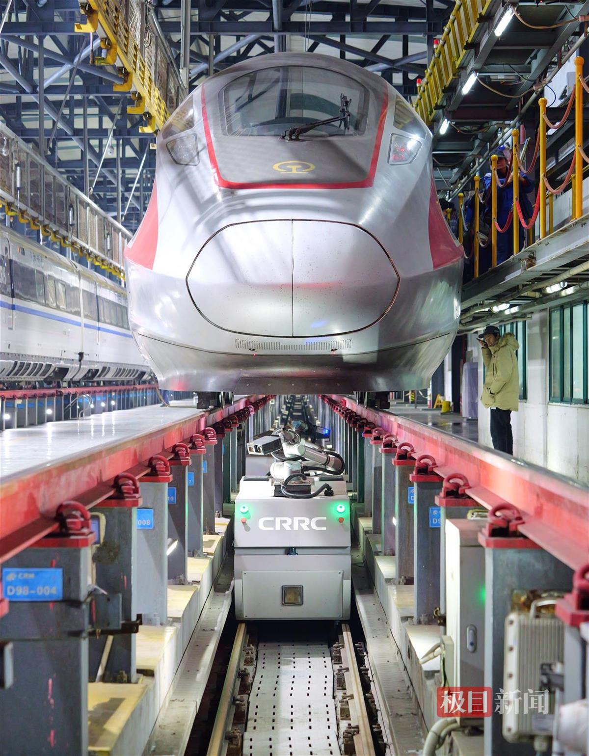 今年春运,武汉动车段智能巡检机器人正式投入使用。全新的动车组巡检机器人集成了先进的传感技术、机器视觉以及人工智能算法,能够在短时间内完成对车辆关键部件的全面检查。记者在现场看到,智能巡检机器人像一列袖珍火车,穿梭于地沟,不时抬起机械臂拍摄、检查动车车底,工作人员轻点平板电脑,检测数据便呈现眼前。