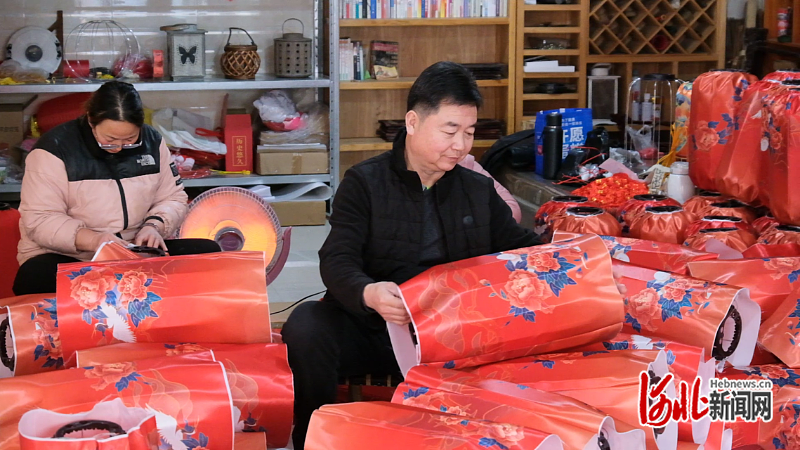 在屯头村,这样的店铺还有很多。白军平也是藁城宫灯的制作艺人,他家主要制作大型灯笼。“现在是销售旺季,我们一家人都投入了灯笼订单的制作,经常忙到深夜,都已经习惯了。”白军平笑着说。