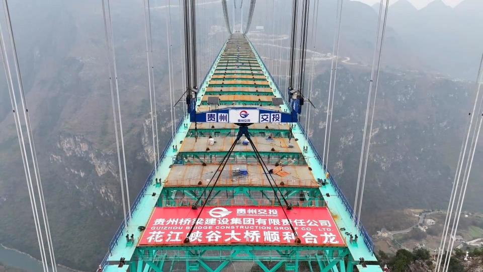 1月17日,随着最后一段重约215吨的钢桁梁精准吊装至指定位置,在建世界第一高桥——花江峡谷大桥成功合龙,为今年通车运营打下坚实基础。