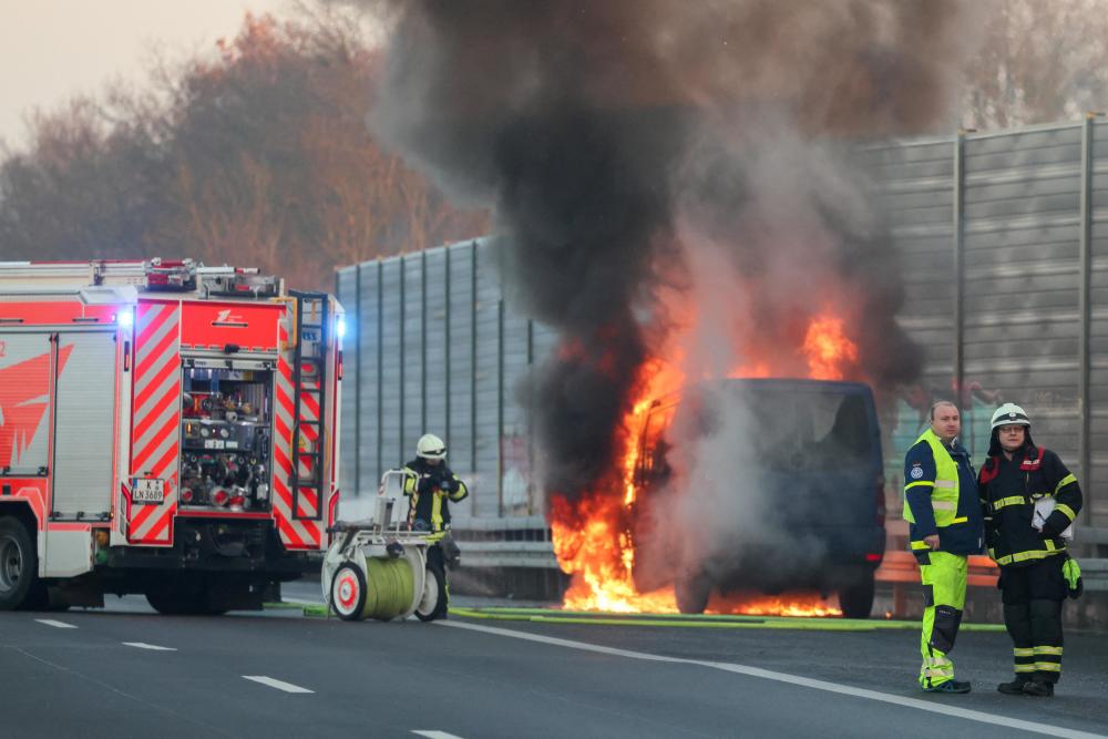 1月19日,在德国科隆-波恩机场附近的一处高速公路上,一辆汽车起火。新华社/路透