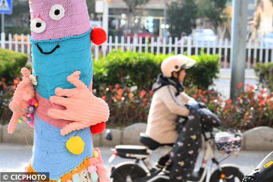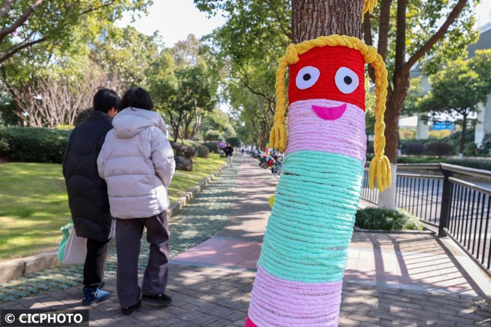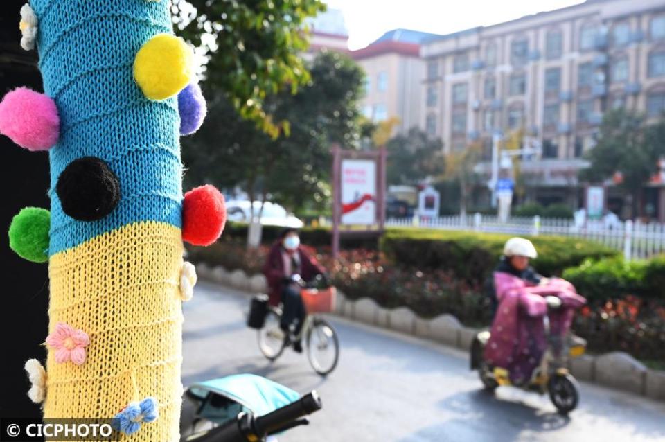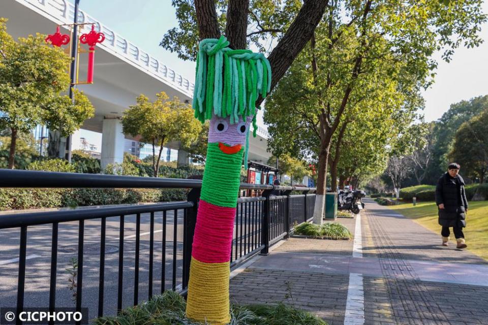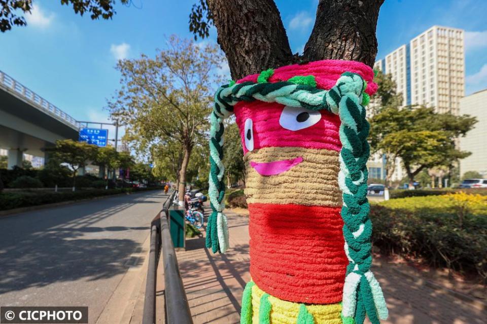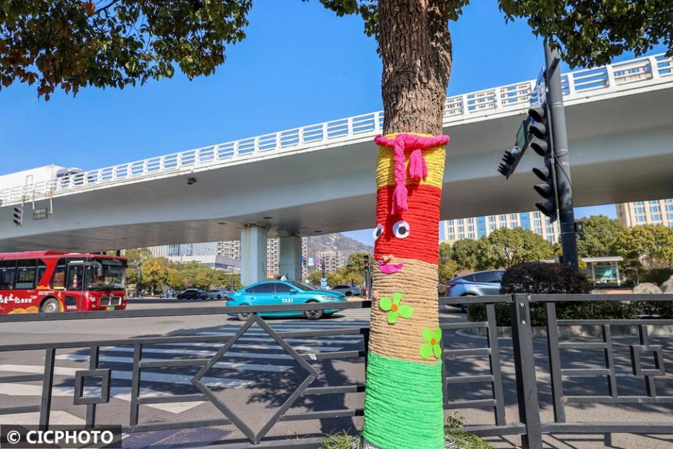 寒冬时节,多地行道树被穿上了五颜六色的“毛衣”等装饰物防寒保暖,有些隔离墩也被套上了卡通形象的“毛衣”。这些引人注目的“服饰”不仅为道路周边带来浪漫和童趣,也为我们心里增添暖意。
