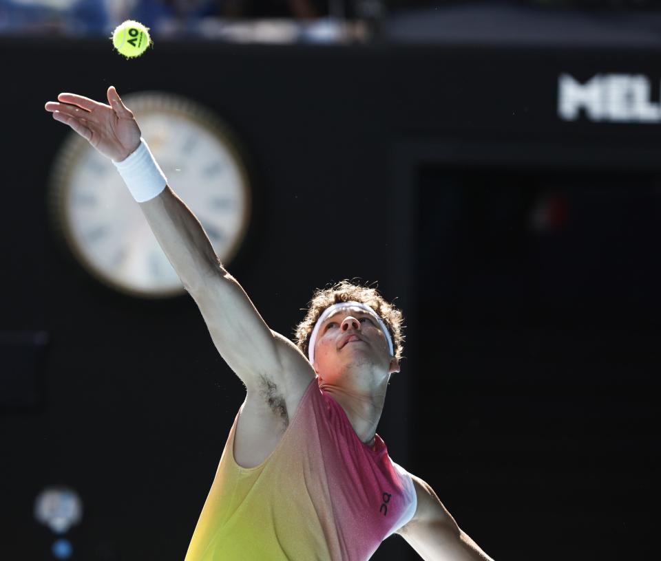 当日,在墨尔本进行的2025年澳大利亚网球公开赛男单四分之一决赛中,美国选手谢尔顿3比1战胜意大利选手索内戈,晋级四强。