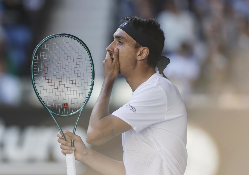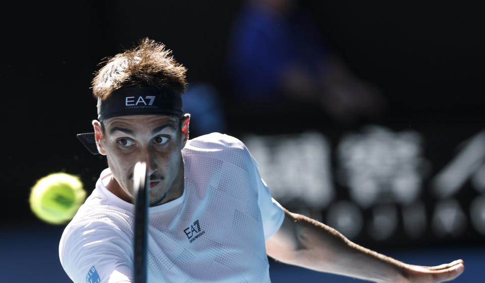 1月22日,索内戈在比赛中发球。新华社记者 马平 摄