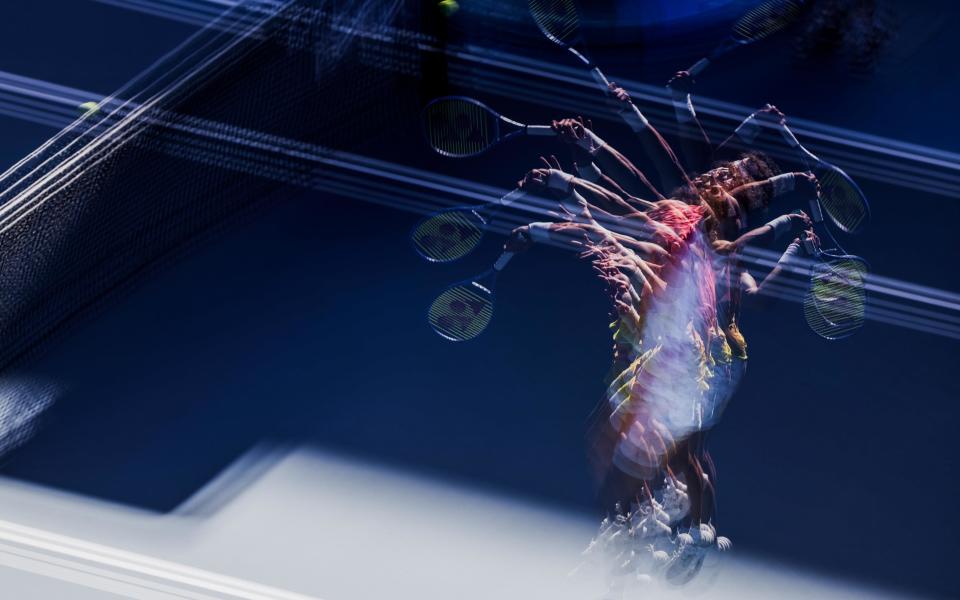 1月22日,谢尔顿在比赛中发球(多重曝光照片)。新华社发(胡泾辰摄)