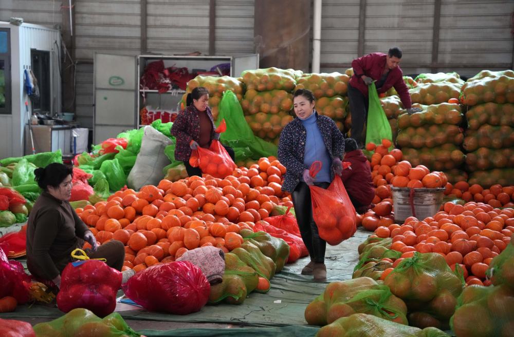 1月21日,在位于山东省寿光市的寿光地利农产品物流园,工作人员对南瓜进行分级、包装。新华社记者 徐速绘 摄