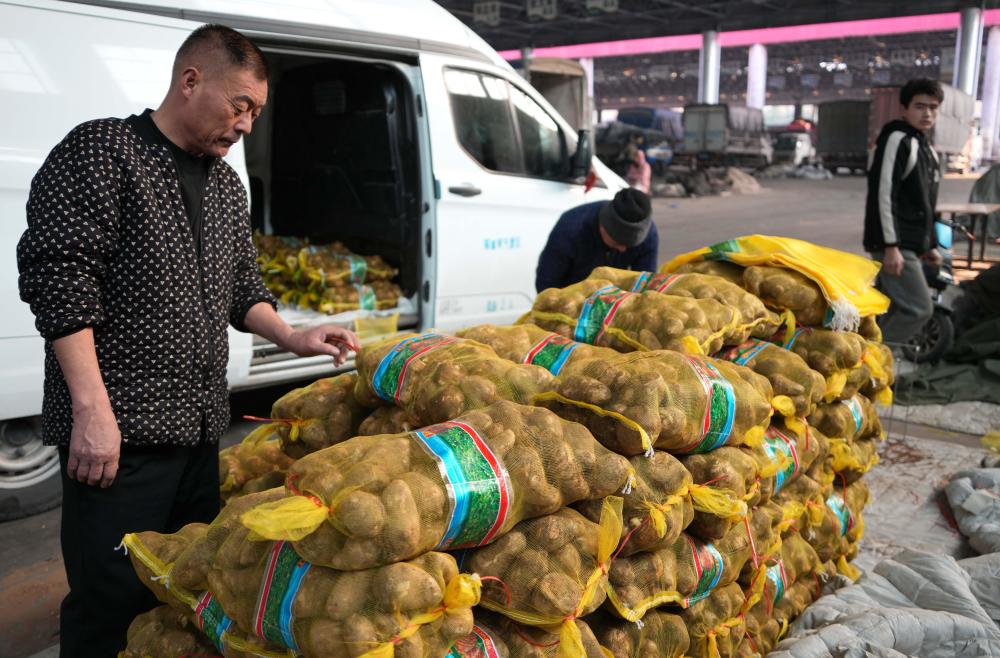 1月21日,在位于山东省寿光市的寿光地利农产品物流园,工作人员在查看即将发货的蔬菜。新华社记者 徐速绘 摄
