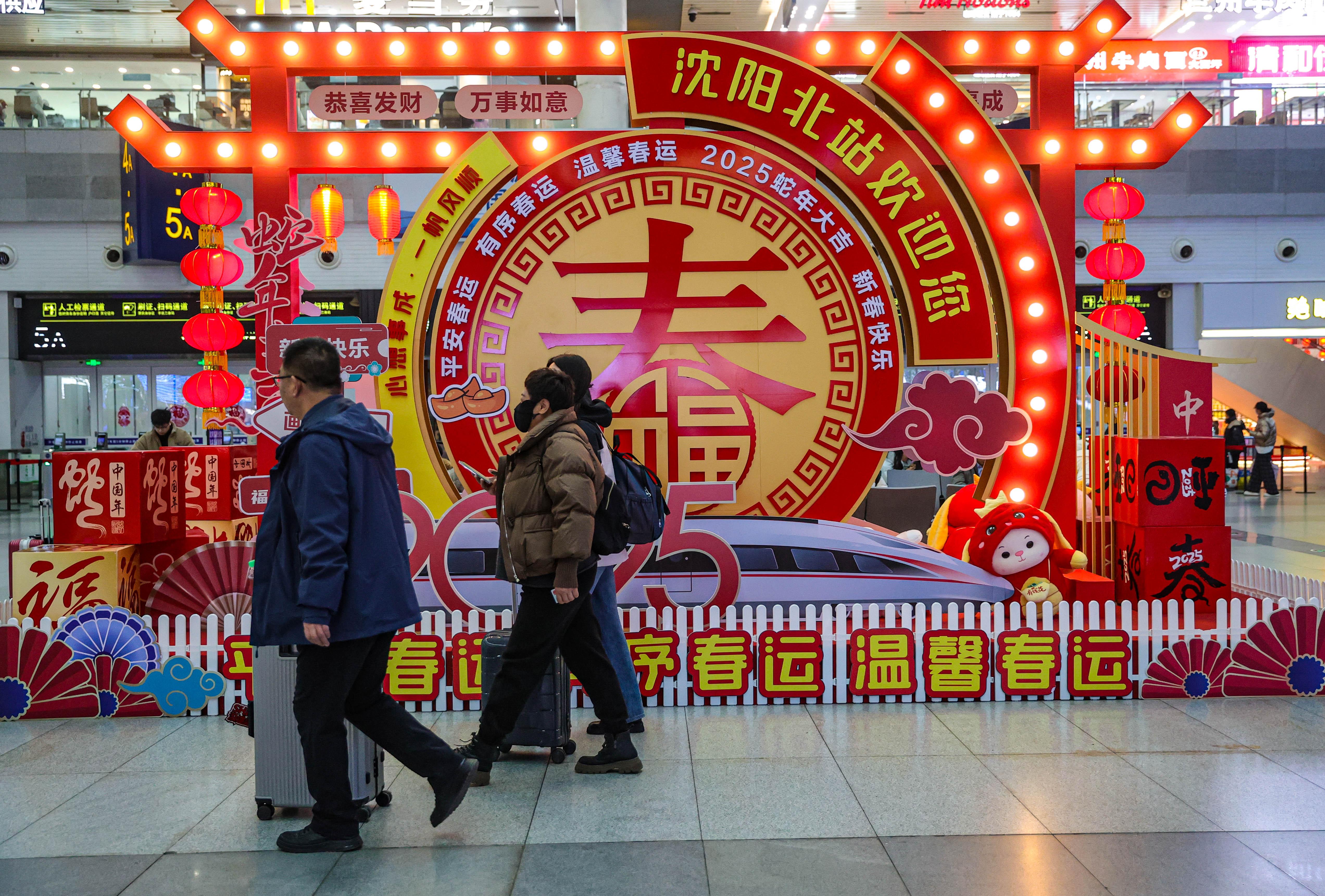 本组图片为1月23日旅客在沈阳北站乘车出行。