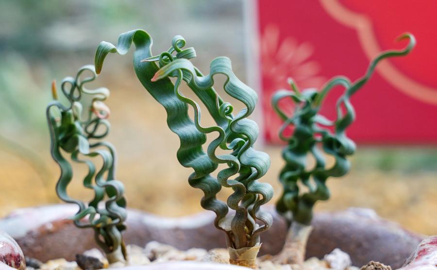 明年是蛇年,植物界中也存在不少形态卷曲的“内卷”植物,其形态与蛇的蜿蜒身姿相似,十分有趣。在“卷出福气”展区,银边卷叶吊兰、霸王空气凤梨、棉毛香果石蒜、弹簧草、蓝色拉培疏鸢尾、卷叶垂榕、皱叶尾风信子等酷似“蛇”的植物,将用曼妙身姿为游客送上“卷福”。