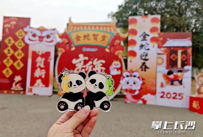 青青超萌冰箱贴则源自园区的明星大熊猫青青。青青特别喜欢玩藤球,设计者巧妙捕捉了青青玩藤球时憨态可掬的精彩瞬间,将其转化为这一创意满满的冰箱贴。画面中,大熊猫青青圆滚滚的身体躺在地上,四脚踢玩藤球,眼睛专注地盯着球,让人看了忍不住会心一笑。长沙生态动物园的超级明星大美、青青是一对好伙伴,另一款冰箱贴可分开可合体,合体后大美与青青依偎在一起,眼神里流露出无尽的温馨与友爱。