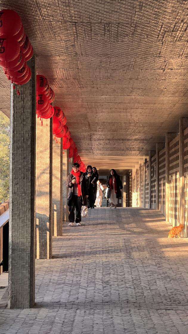 踏入博物馆,连廊上悬挂着的红灯笼、春联挂饰等春节主题装饰物格外醒目。连廊中的“金砖文创戳戳乐”活动别出心裁,巧妙地将御窑金砖的建筑特色与互动体验相结合,既点亮了御窑建筑,又寓意金砖带给人们吉祥好运,引得游客们纷纷驻足参与。