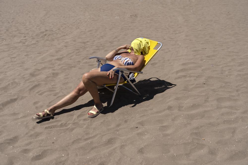 1月28日,一名女子在阿根廷马德普拉塔的拉斯托斯卡斯海滩上享受阳光。新华社/美联