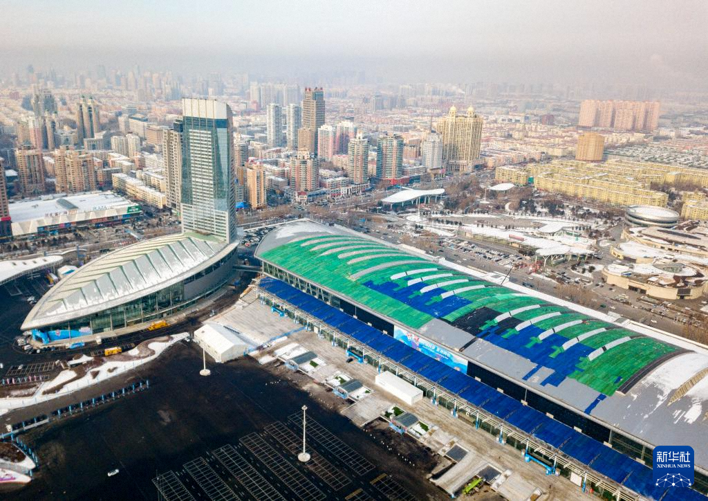 这是1月21日拍摄的哈尔滨市冰球馆(男子冰球比赛场馆)(无人机照片)。