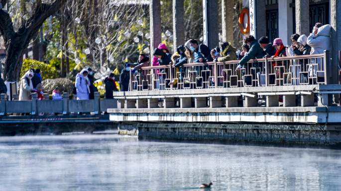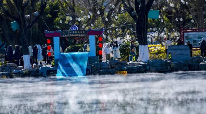 白茫茫的景象像极了人间仙境,游客和市民纷纷拍照记录这诗意美景。