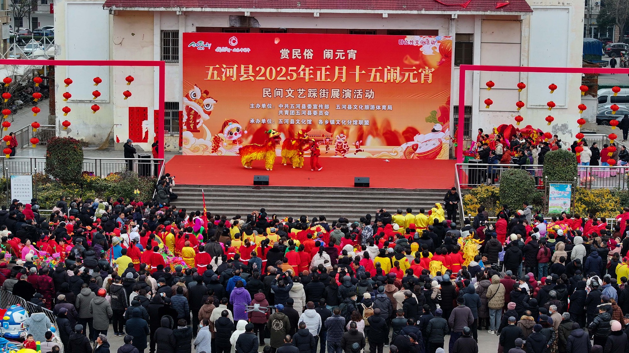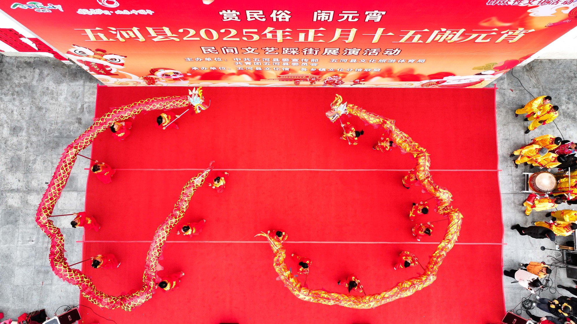元宵节将至,2月11日,安徽省蚌埠市五河县在青年圩广场举办“赏民俗闹元宵”民间文艺踩街展演活动。龙狮队、锣鼓队、秧歌队、彩船队等40余支代表队集中展演。此次“踩街”活动以传统的元宵佳节为依托,搭建群众舞台,吸引群众参与,展现了喜庆氛围,丰富了非遗传承保护形式。