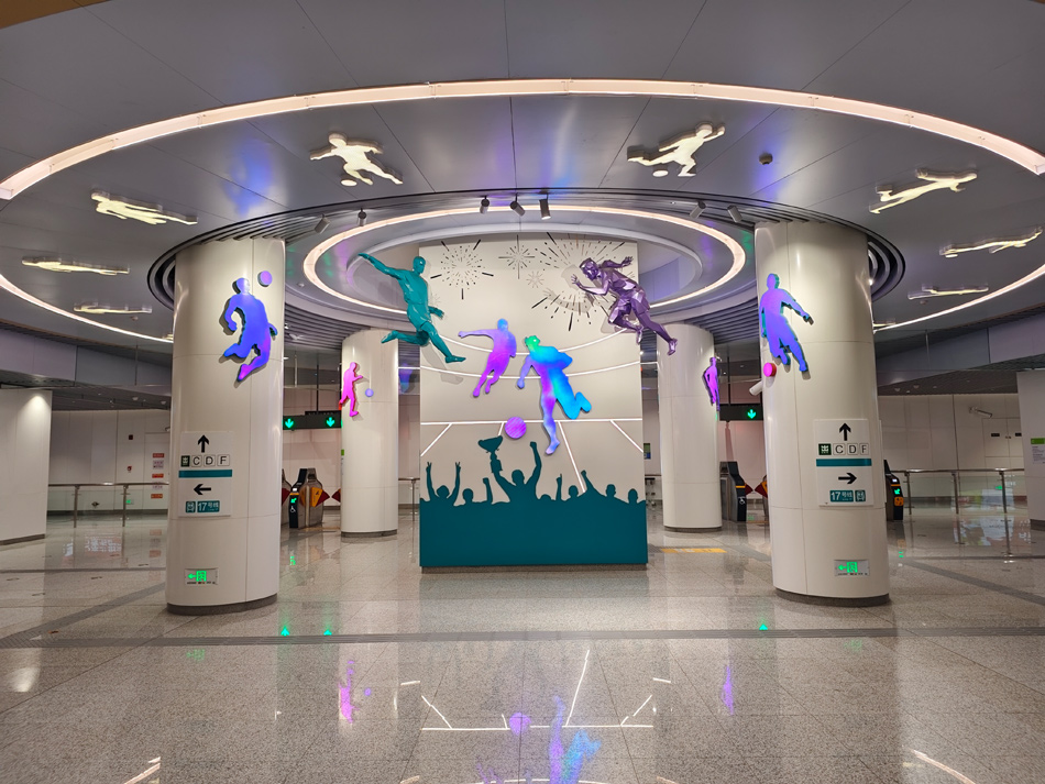这是北京地铁工人体育场站内景。北京地铁3号线在该站与北京地铁17号线实现换乘。新华网 穆淼 摄