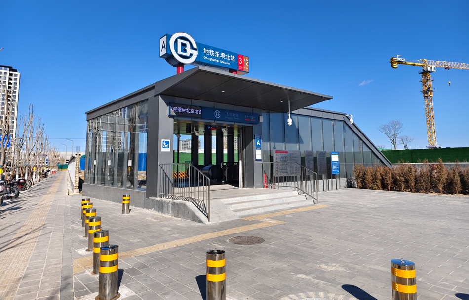 这是北京地铁东坝北站外景。该站是同一天开通运营的北京地铁3号线一期西段和北京地铁12号线一期终点站,两条线路在此实现换乘。新华网 穆淼 摄