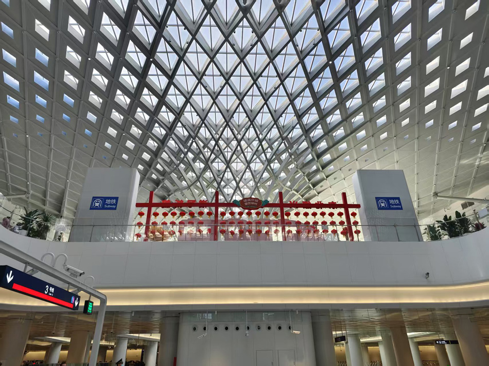这是北京朝阳站交通枢纽内部,去往北京地铁3号线的通道。新华网 穆淼 摄