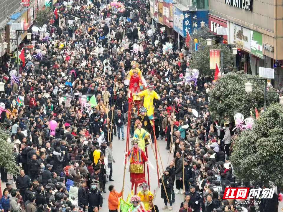红网时刻新闻2月11日讯(记者 秦楼 张必闻)2月11日下午,湖南汨罗长乐古镇热闹非凡,长乐故事会大型巡游活动上演,吸引了大量游客前来观赏。在熙熙攘攘的人群中,巡演队伍排成长龙,上市街和下市街的故事交替巡游,上演了一场场精彩绝伦的表演,让在场观众大饱眼福。
