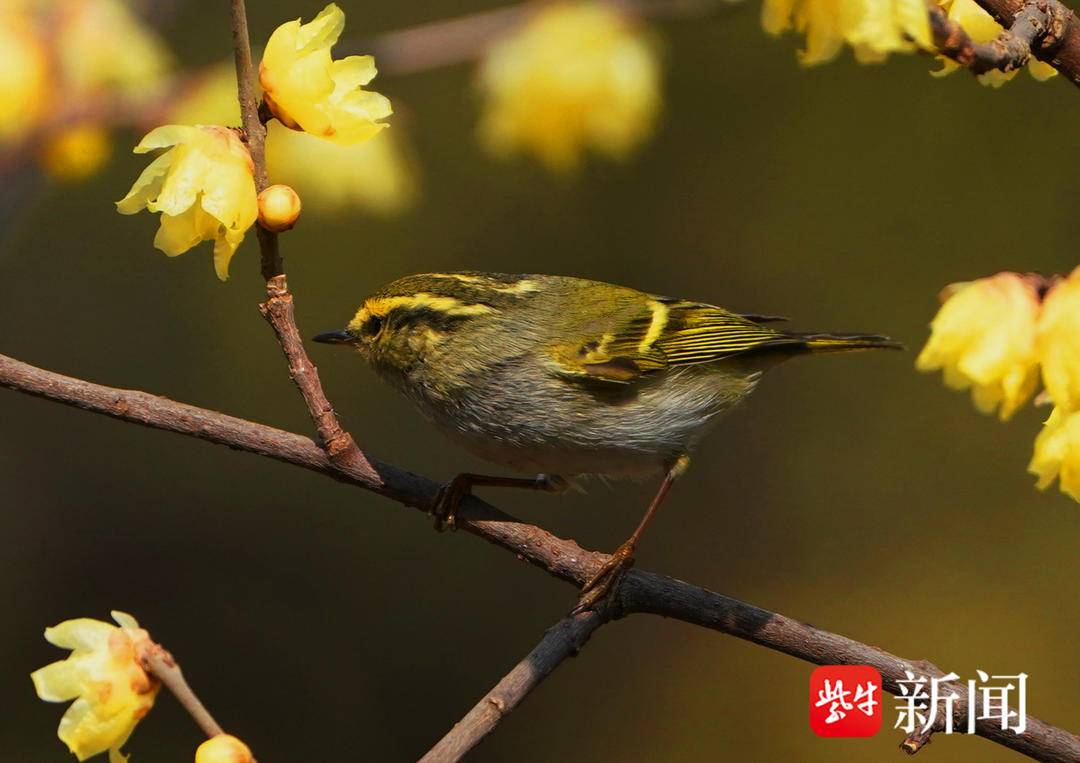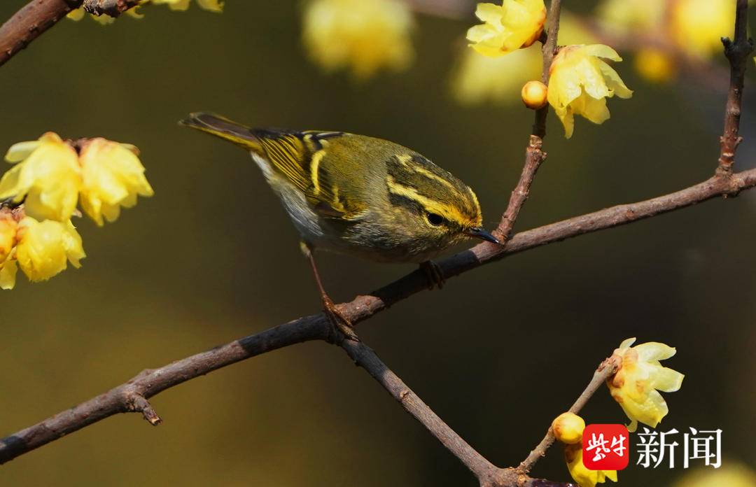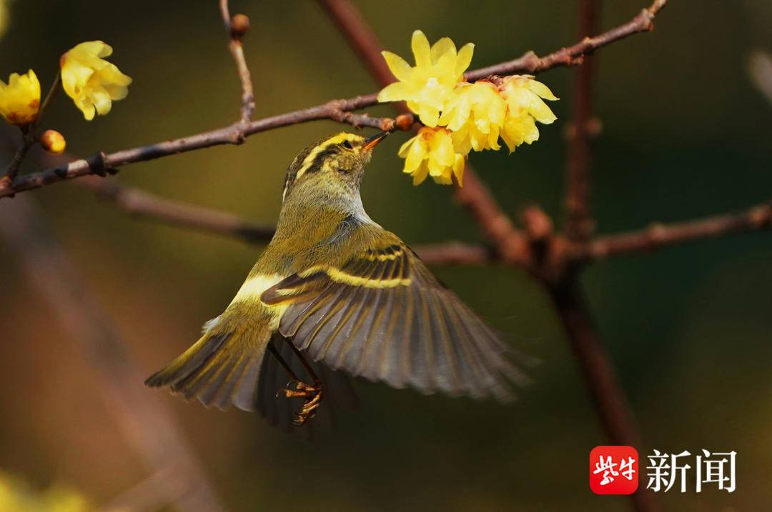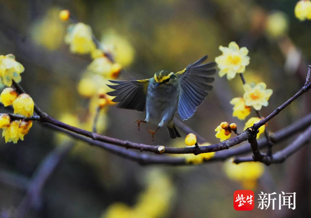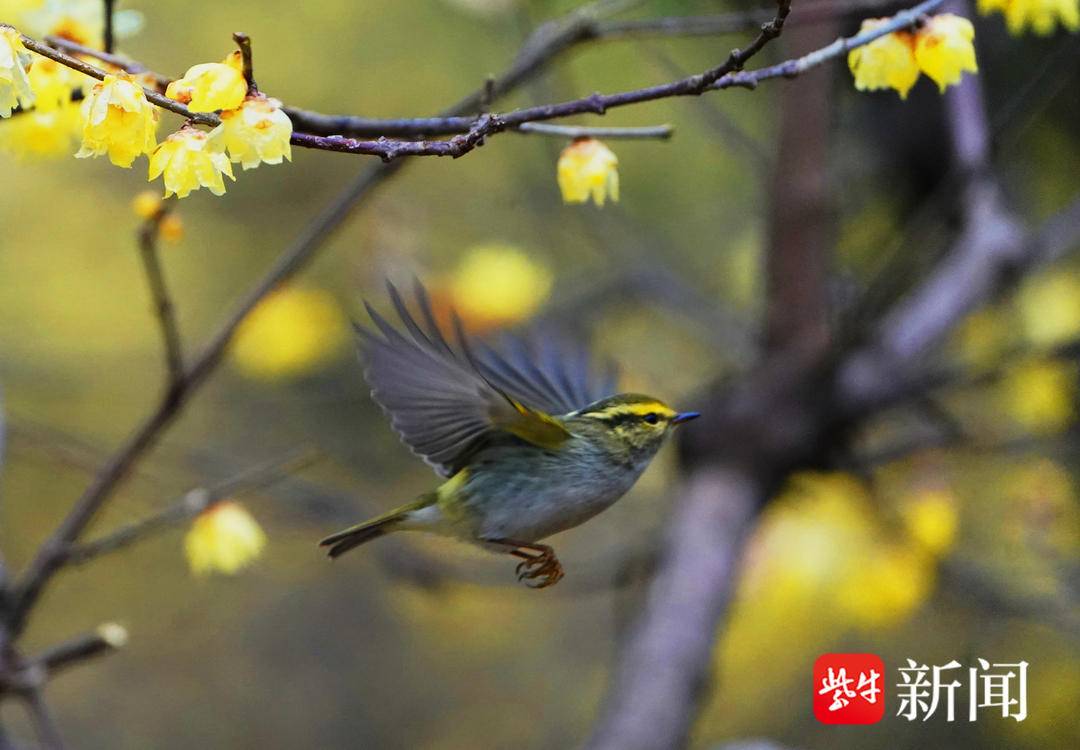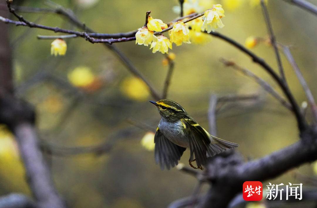扬子晚报网2月11日讯(通讯员 武家敏 记者 梅建明)在美丽的南京小桃园里,蜡梅花正在盛开,吸引了不少晨练市民前来赏花拍照。有趣的是,大量盛开的蜡梅花,还吸引了一群黄腰柳莺来闹春,享受着美好的时光。