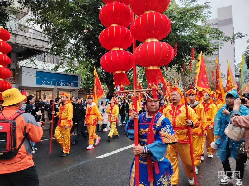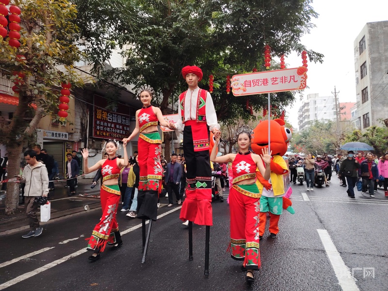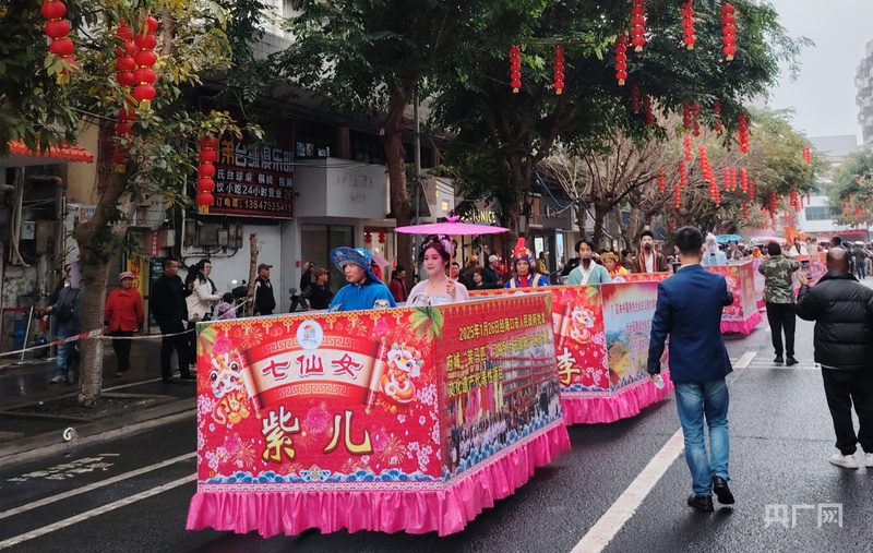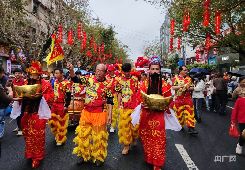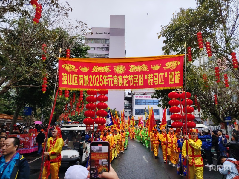 央广网海口2月12日消息(记者 付美斌)锣鼓喧天,龙狮欢舞……2月12日,农历正月十五元宵节,海口市琼山区府城街道上演特色民俗文化“装马匹”巡游。