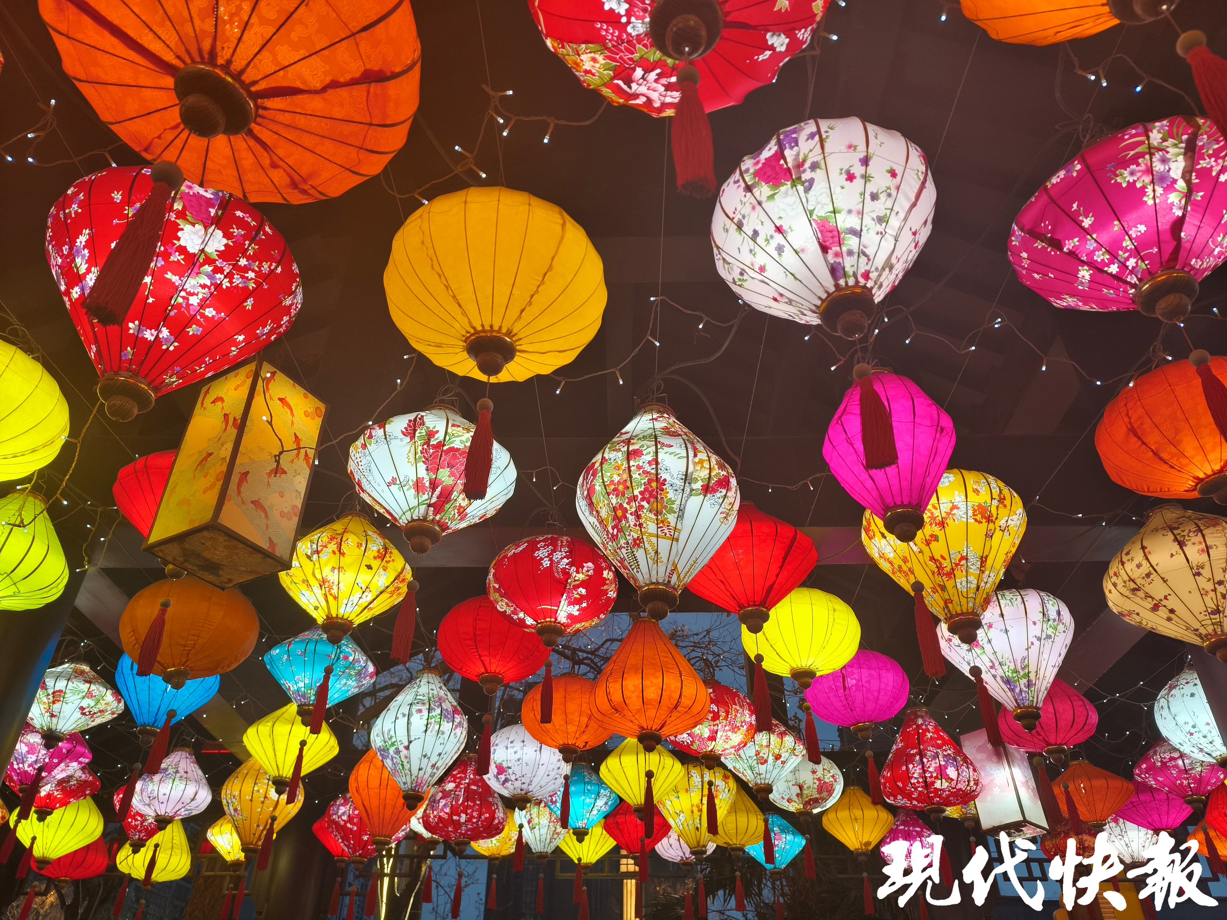 “每年元宵节都会有很多人来水街看花灯,我也看过几次,每次人都挺多的。”戚女士笑着说,“刚刚我开电瓶车带儿子路过,看到里面很热闹,又忍不住进来了,我们准备吃鸡蛋饼、喝奶茶后就看花灯。”