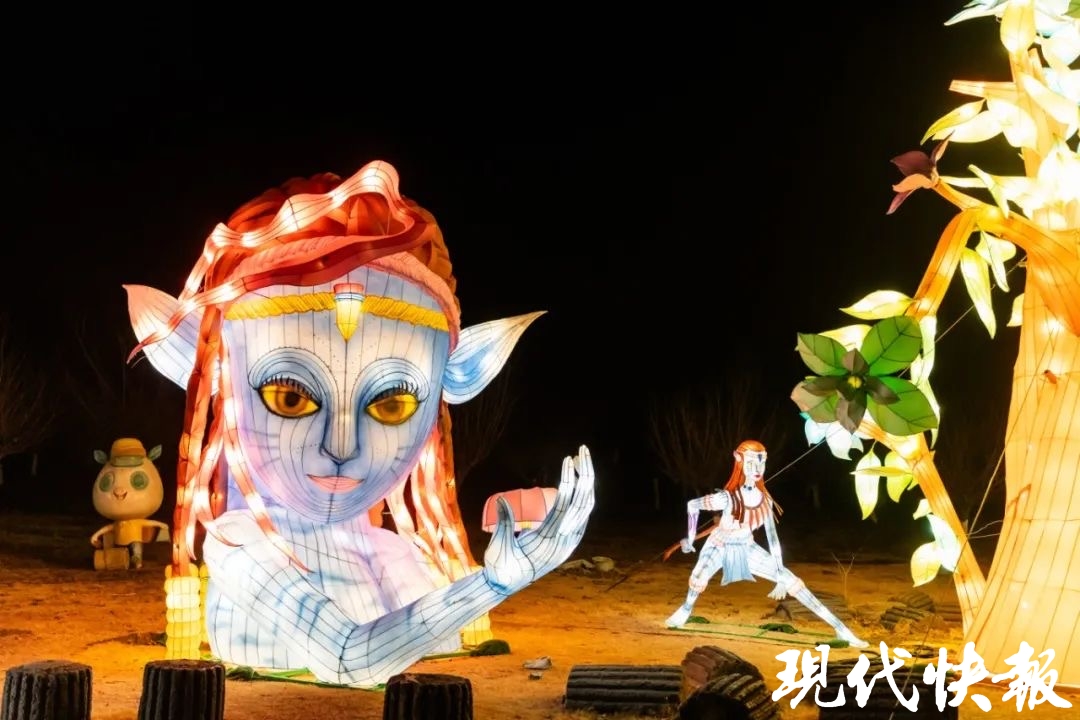 “元宵节看个灯会,这个年才是圆满地过完。”来自宿迁的黄女士和闺蜜穿着汉服在灯光现场拍照打卡。灯光璀璨映“白马”,行人如织传歌声,灯会包含喜迎新春、穿越山海、探寻秘境、走进自然四大主题灯组。这里还有九天玄女、鹿蜀、九尾狐等山海经神话人物和神兽花灯,山海之名,穿越千年。