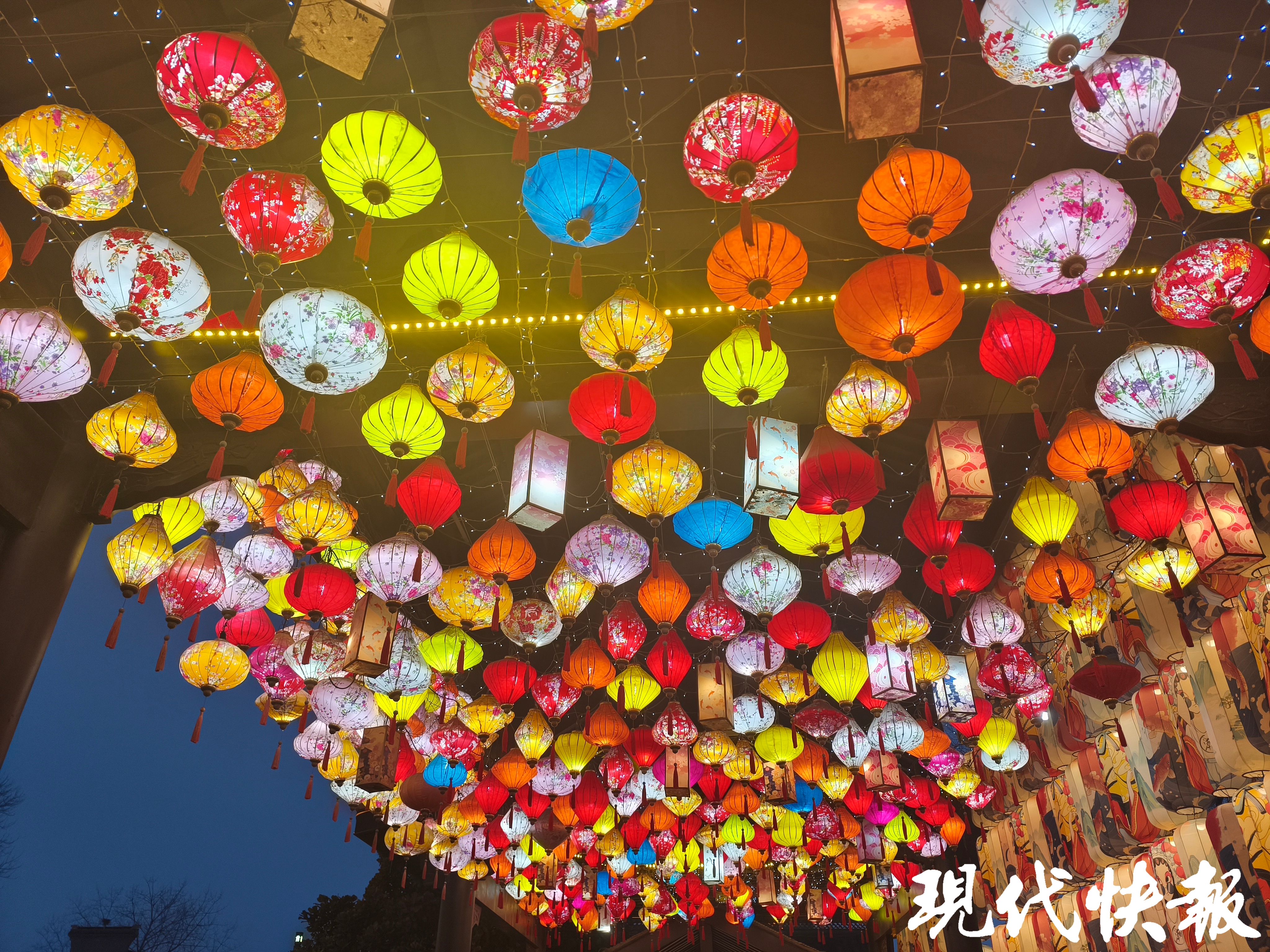 元宵节,当然少不了猜灯谜。只见一条长长的花灯通道里,挤满了人,大家纷纷抬头猜着灯谜,猜对三个还可以领娃娃。“我和妈妈今天猜对了好几个灯谜,成功领取到了娃娃。”12岁的王思诚脑门上画着蜘蛛侠,手上拿着奖品娃娃,开心地在华灯下留下美照。