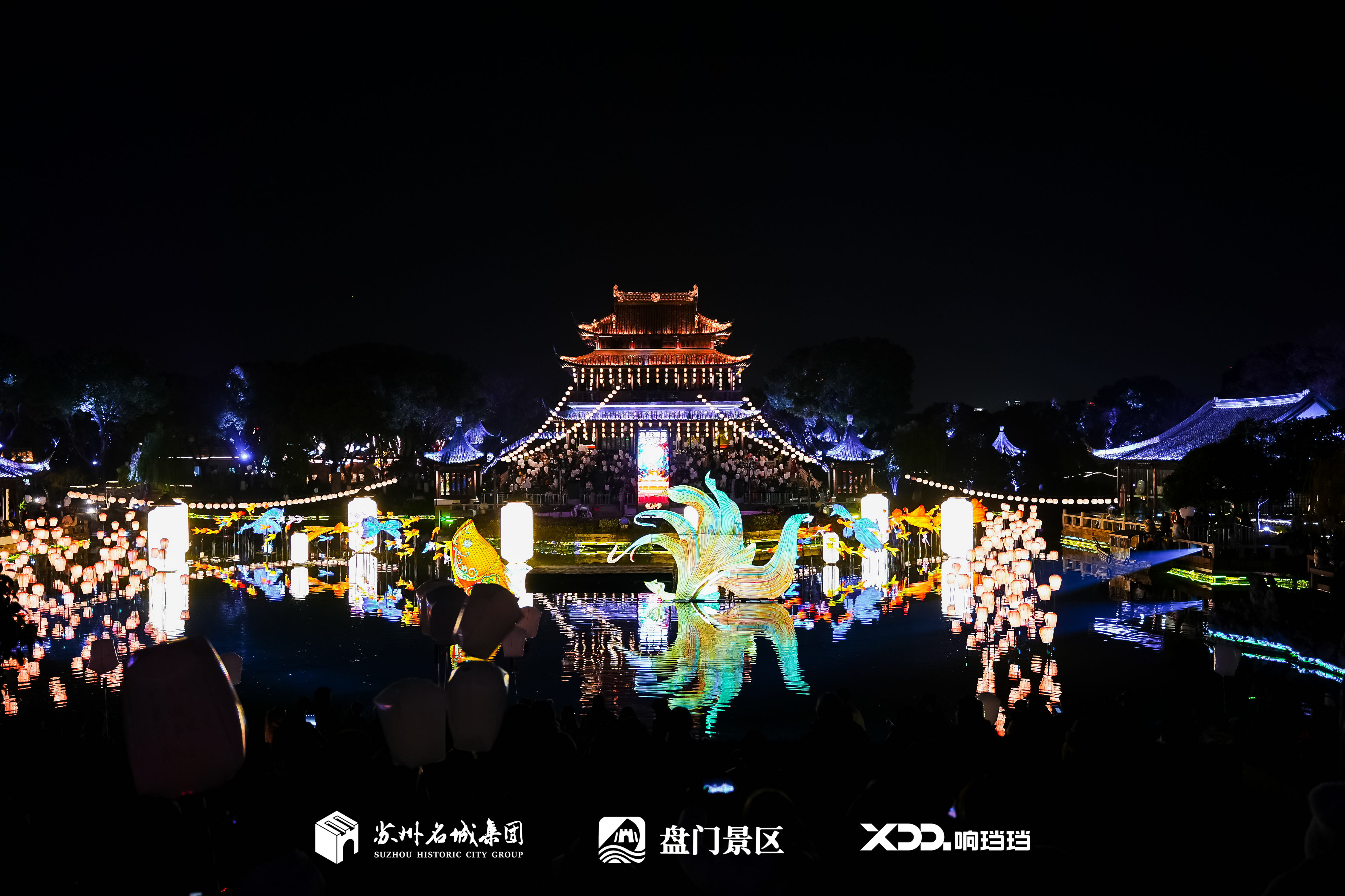 夜幕降临,苏州盘门灯火辉映,彩灯如海,游人如织。千盏孔明水灯在水池中摇曳生姿,流光溢彩,美不胜收。赏灯的人们沿湖漫步,与美景融为一体。