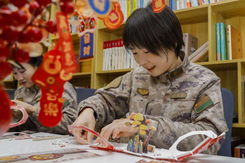 新疆军区某团营区内,官兵们齐聚一堂,通过写家书等方式,向亲朋好友献上最真挚的问候。坚守战位的官兵们军姿昂扬,用忠诚守护着万家灯火。(杜滢馨、彭善宇、唐熙豪、田海洋)