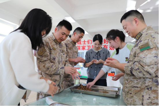 新疆军区某边防团都拉塔边防连的战士们不忘战备、坚守战位。节日当天,官兵们还与来队探亲的军属们齐聚一堂包汤圆,度过了一个极具军营特色的元宵节。(周璇、王艺锐、秦江红)