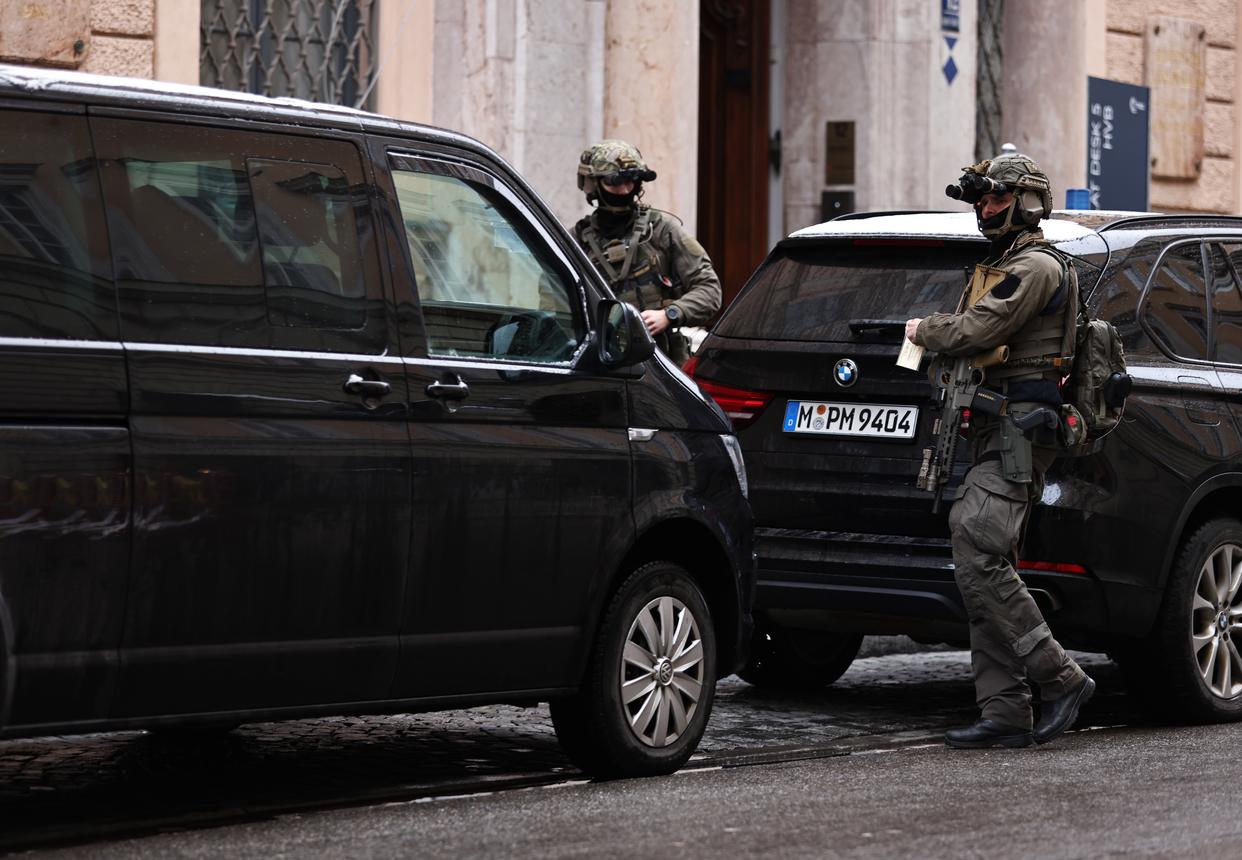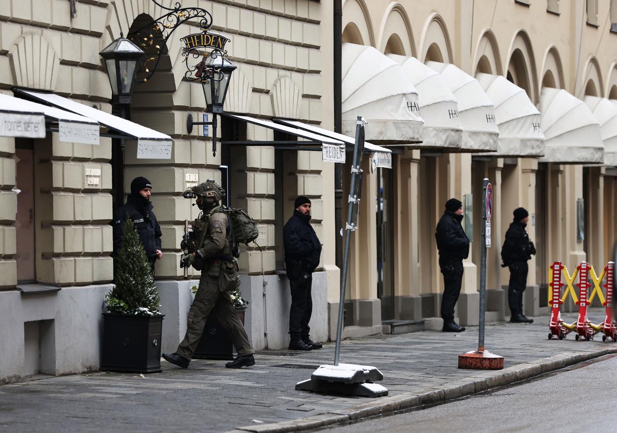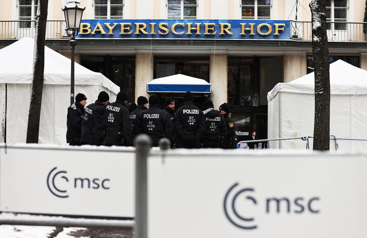 2月14日,警察在德国慕尼黑安全会议主会场外警戒。新华社记者 高静 摄