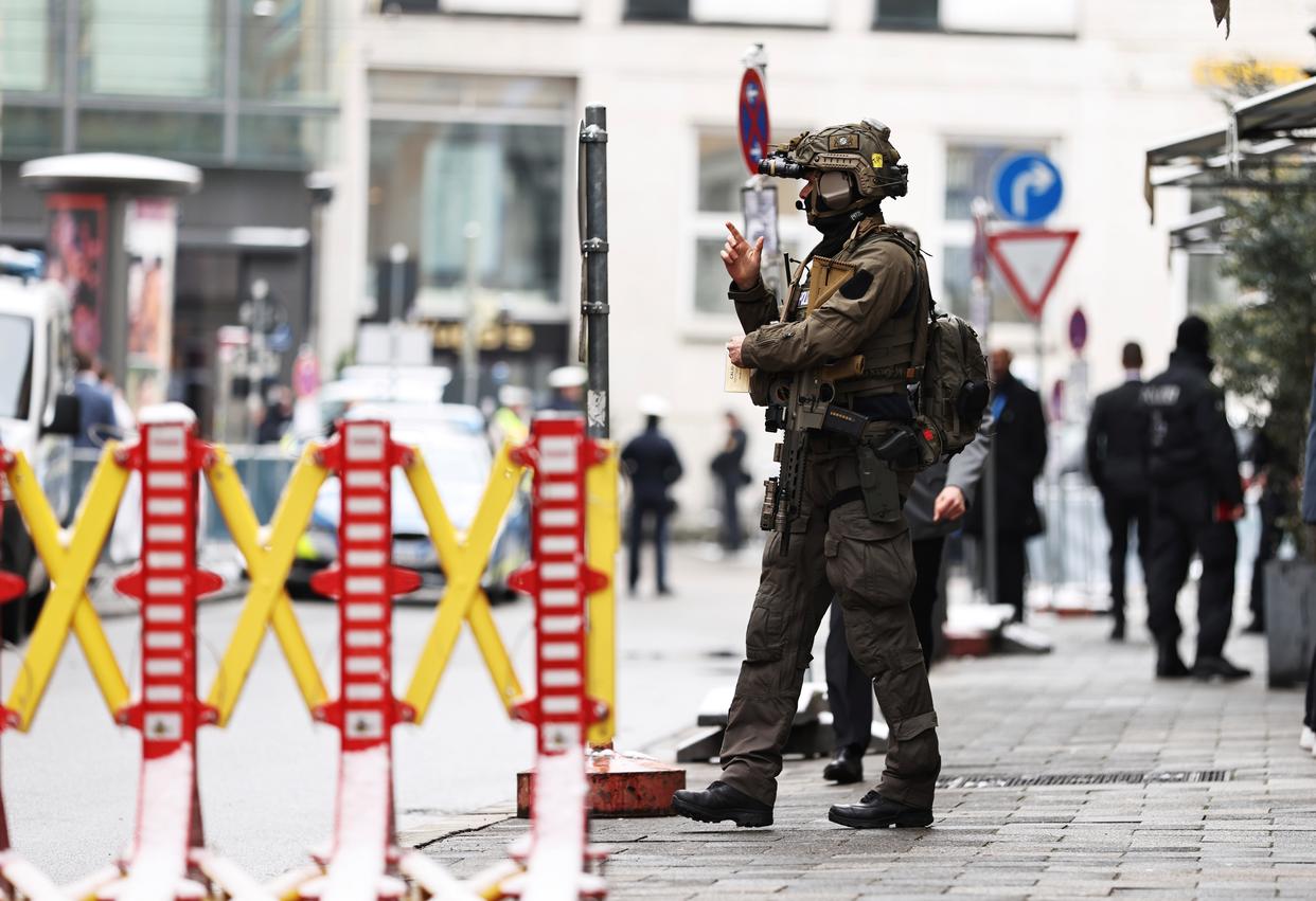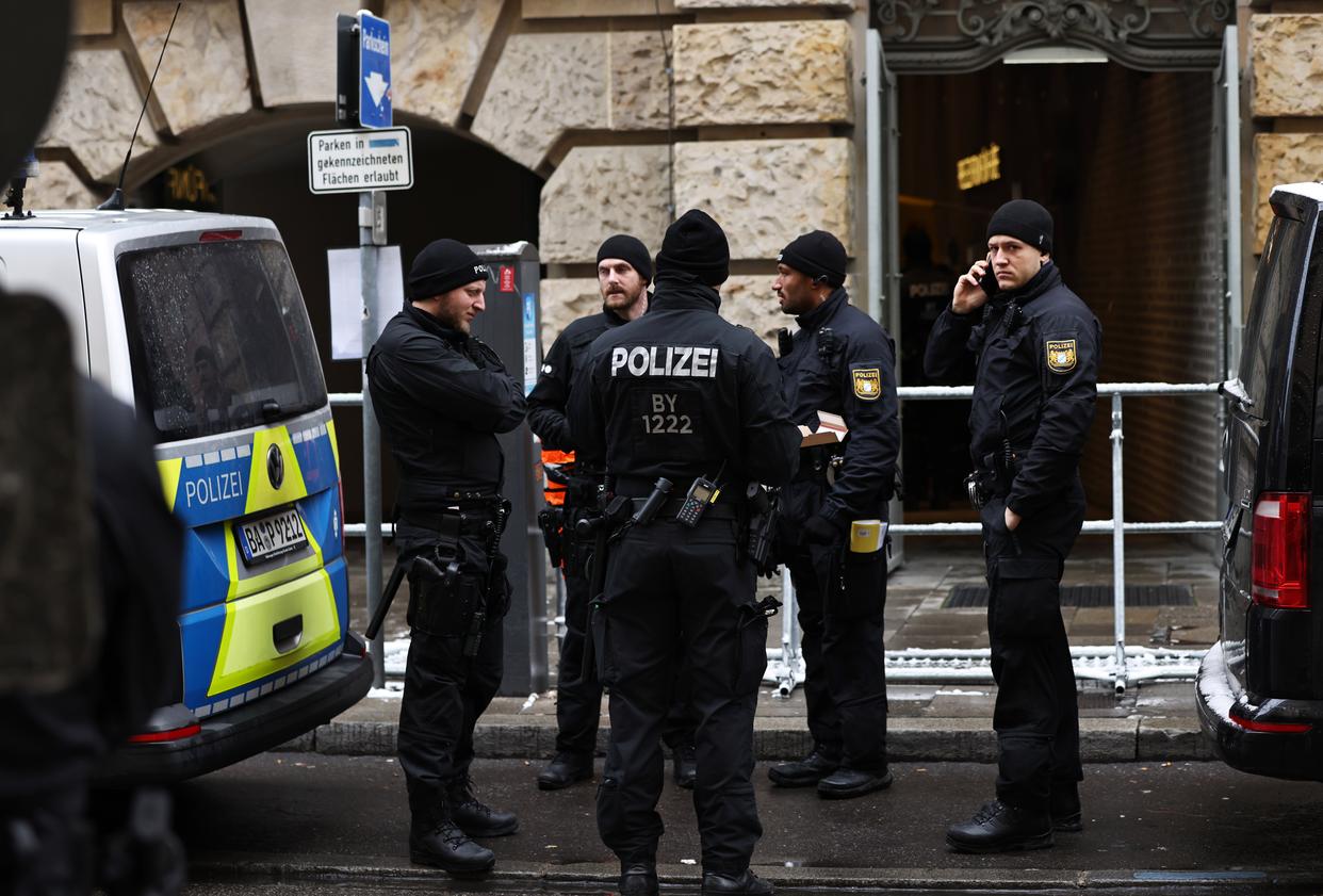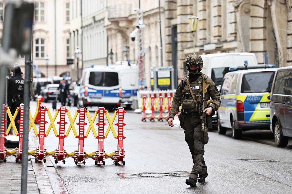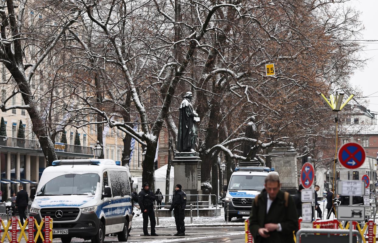 2月14日,警察在德国慕尼黑安全会议主会场外警戒。新华社记者 高静 摄