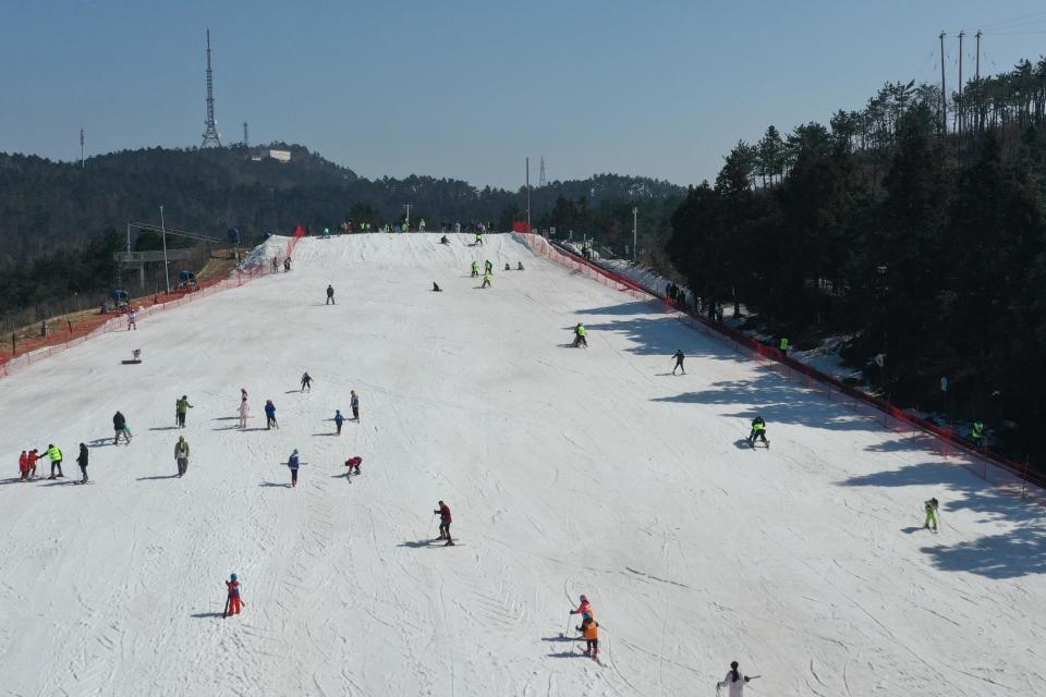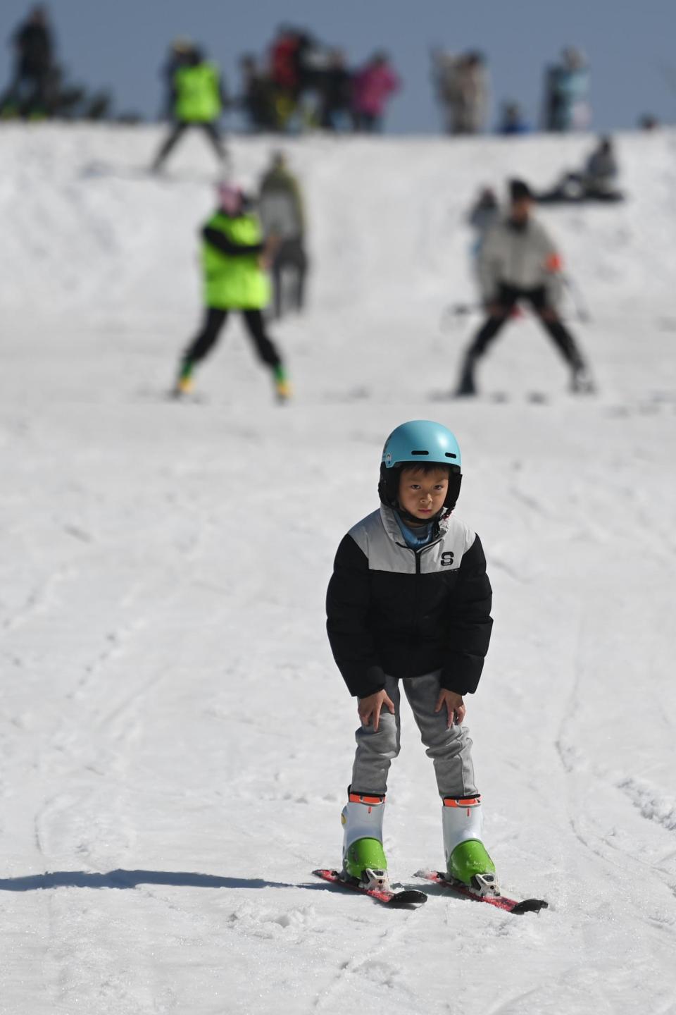 当日,不少游客来到位于浙江省宁波市奉化区溪口镇的商量岗滑雪场游玩,体验冰雪运动的乐趣。