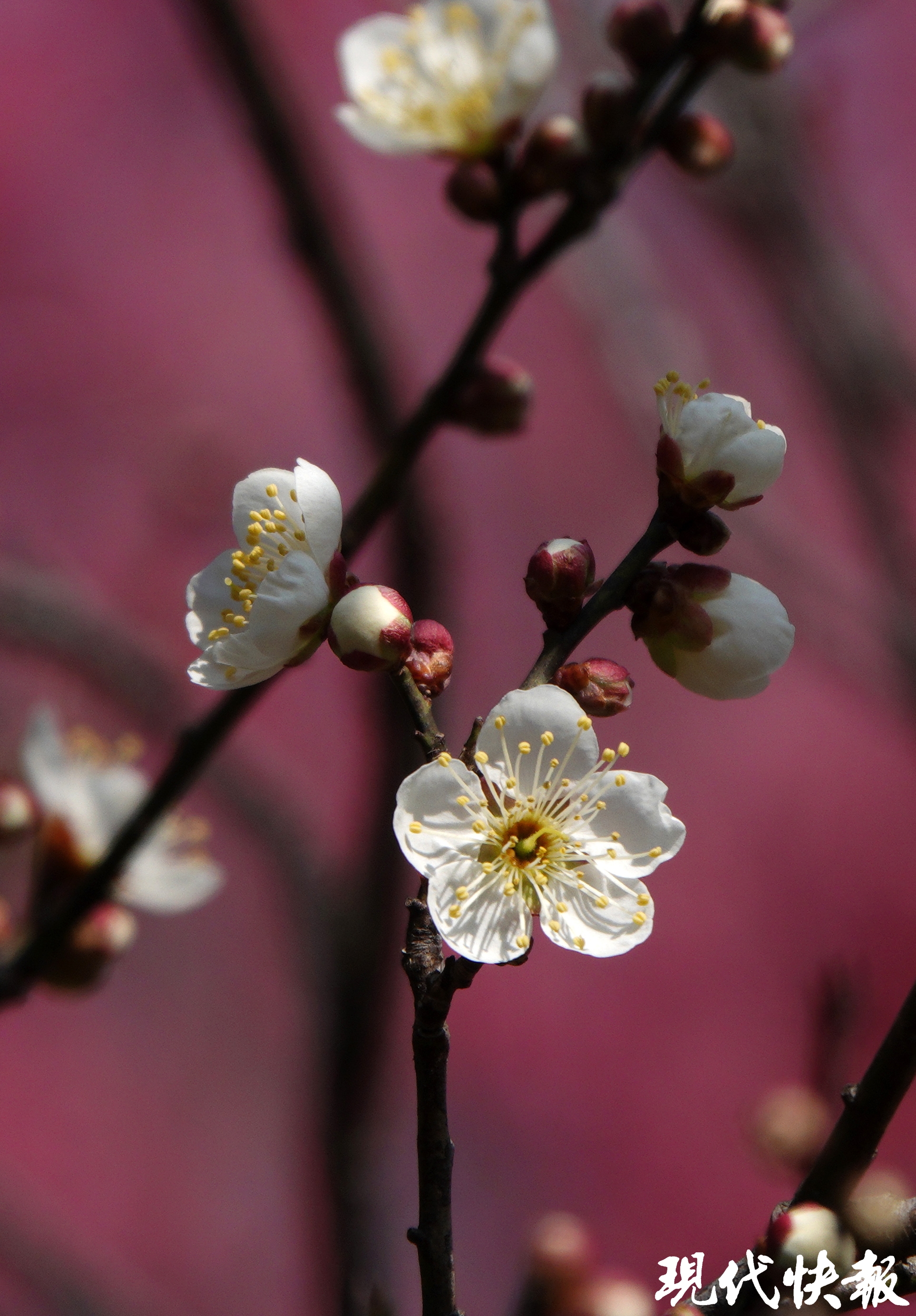 现代快报讯(记者 张然/文 赵杰/摄)近日天气晴暖,南京梅花山的含梅量更高了,目前盛开的依然是以早花品种为主,主力军中花品种均处于含苞待放的状态,博爱阁、红楼艺文苑是感受春意的最佳打卡点。