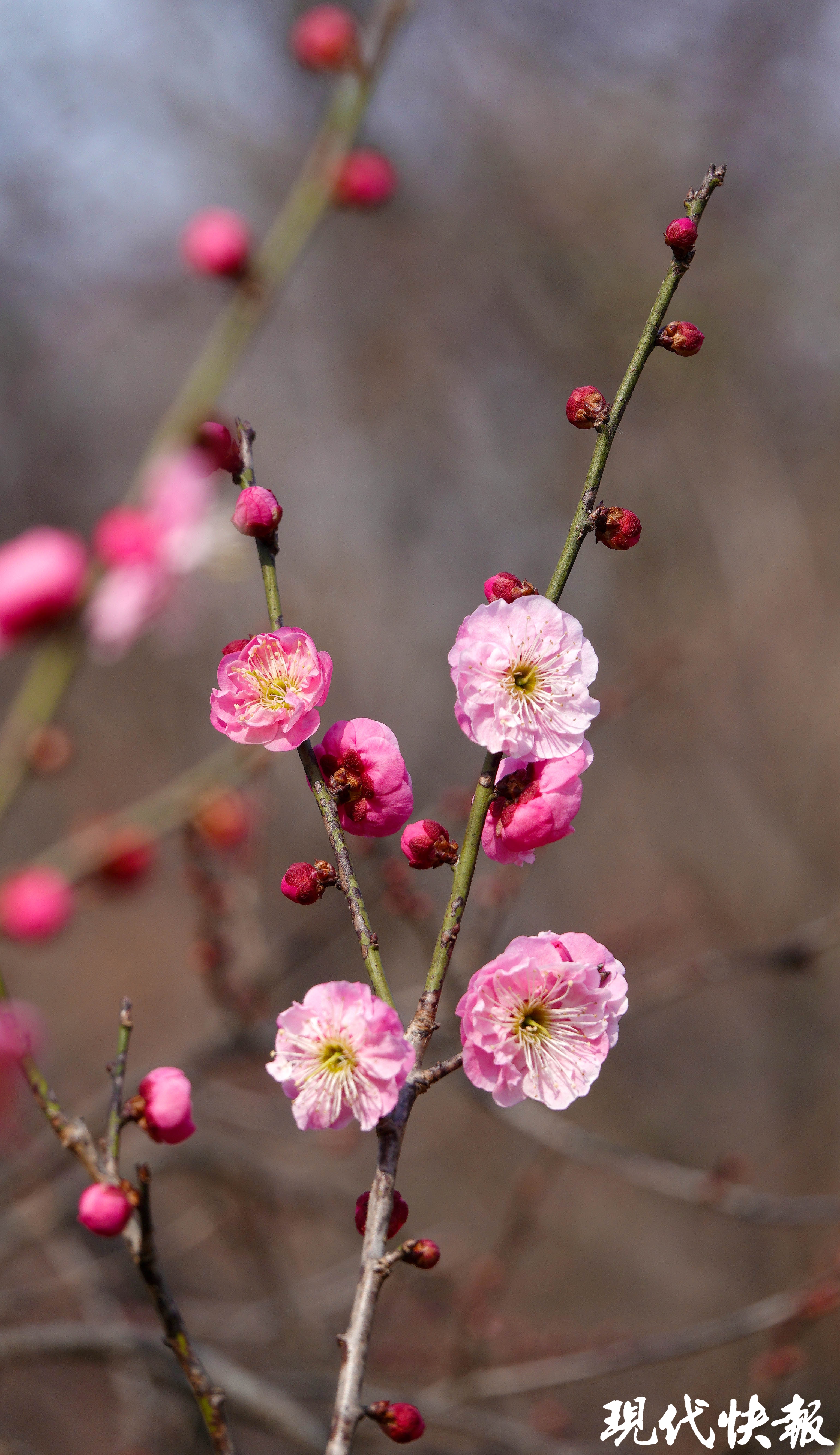 天气回暖,南京梅花山上暗香来袭,早花品种已经绽放。红、白、粉的梅花陆续绽放,带来春的气息。