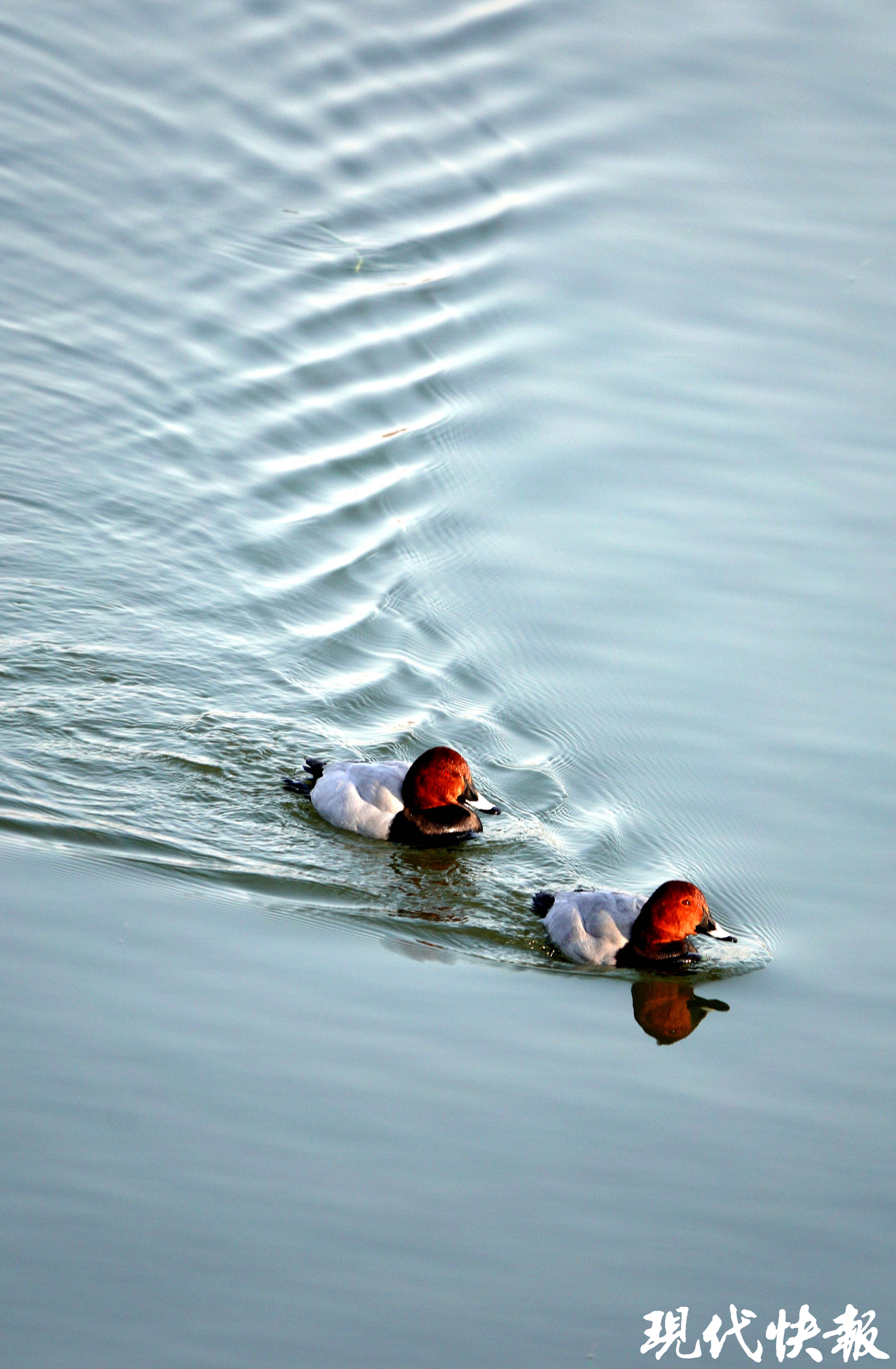 “春江水暖鸭先知”,湖中水鸟嬉戏,悠闲游弋。