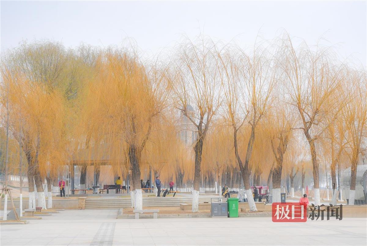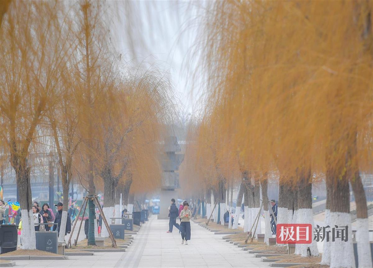 2月19日,汉口江滩天气晴朗,阳光温柔地洒落,与轻纱般的薄雾交织出一幅梦幻画卷。在这片自然与人文交融的胜地,成片的柳树成为了最耀眼的风景线,宛如“万条垂柳金丝绦”,在明媚阳光的映衬下更显璀璨夺目。