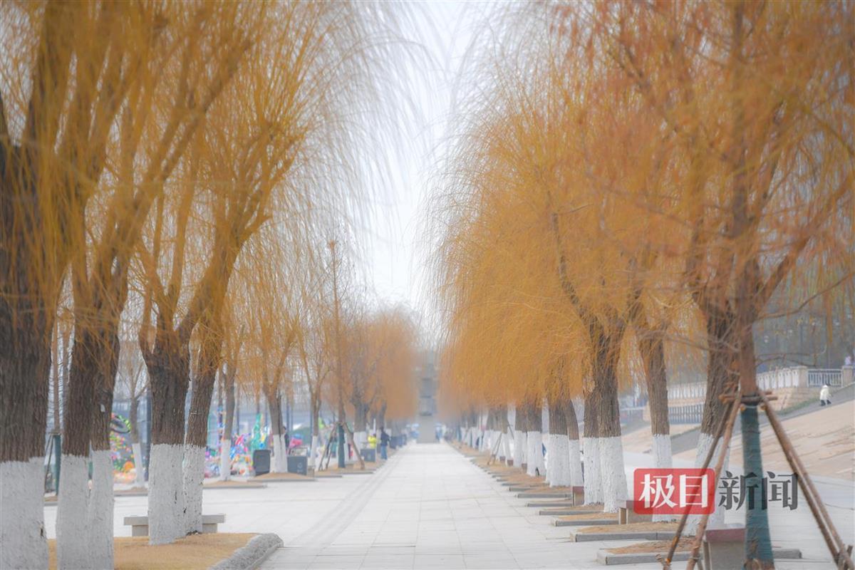 立春已过,汉口江滩那延绵四公里的柳树林仍保留着冬日的余韵,树叶泛黄,以一种独特的金黄姿态,在微风中轻轻摇曳,仿佛是大自然精心布置的金色装饰,为江滩堤岸披上了一袭华丽的金纱。这不仅吸引了众多市民驻足观赏,更成为了市民们散步、游玩、拍照留念的理想之地。
