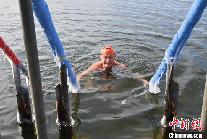 中新网长春2月19日电 (记者 张瑶)2月19日,长春市最低气温跌至零下17℃,南湖公园冬泳基地的冰面上寒风刺骨,却难掩一位白发老人的矫健身姿——85岁的吴长海如往常一般进入冰湖,在凛冽的湖水中挥臂畅游。