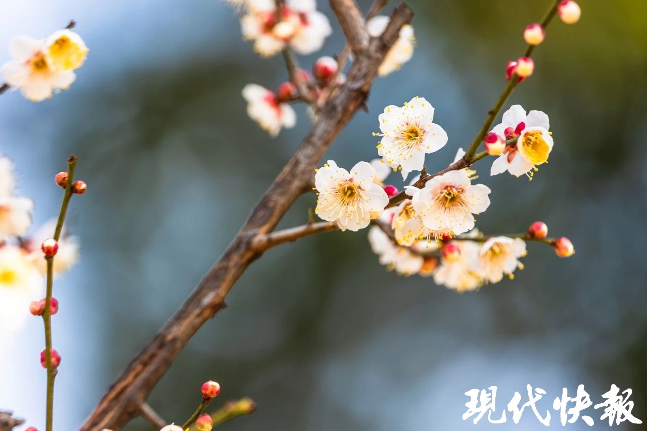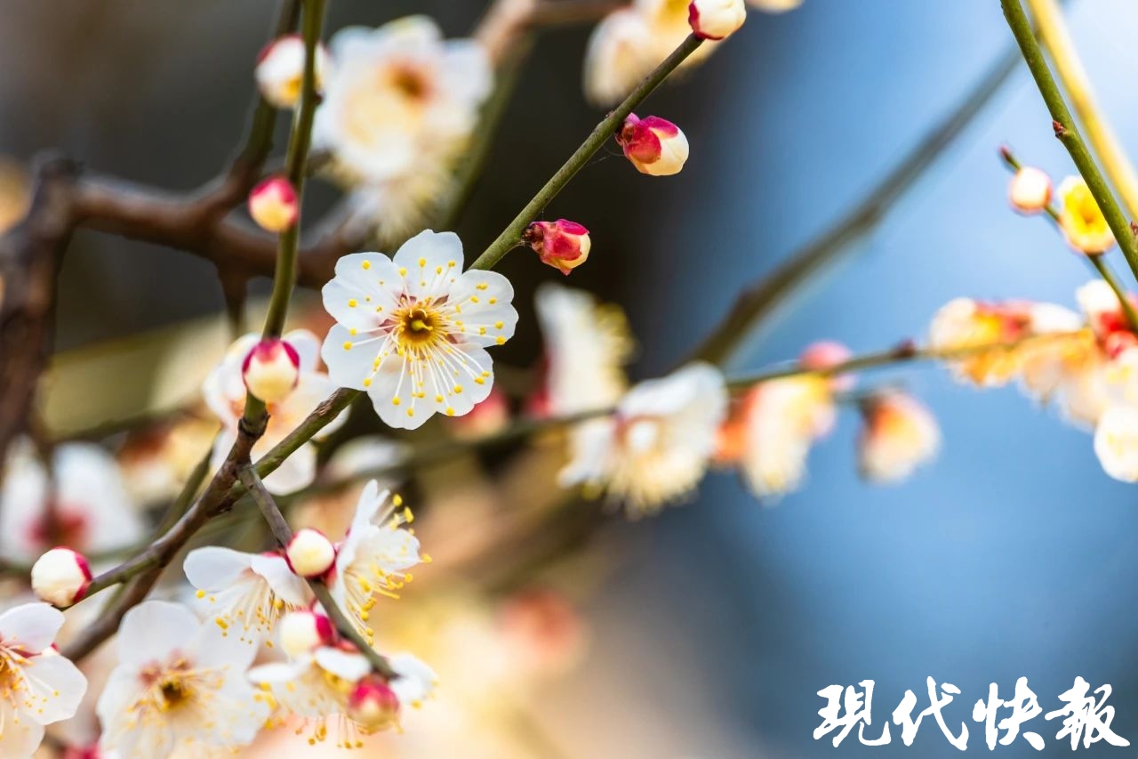 不久前,在玄武湖梁翠堤区域,一株江梅悄然绽放出六瓣花朵,打破了梅花常见的五瓣形态。在民间,“6”有着诸事和顺的美好寓意,这株独特的梅花迅速成为“网红”,吸引众多游客前来打卡。