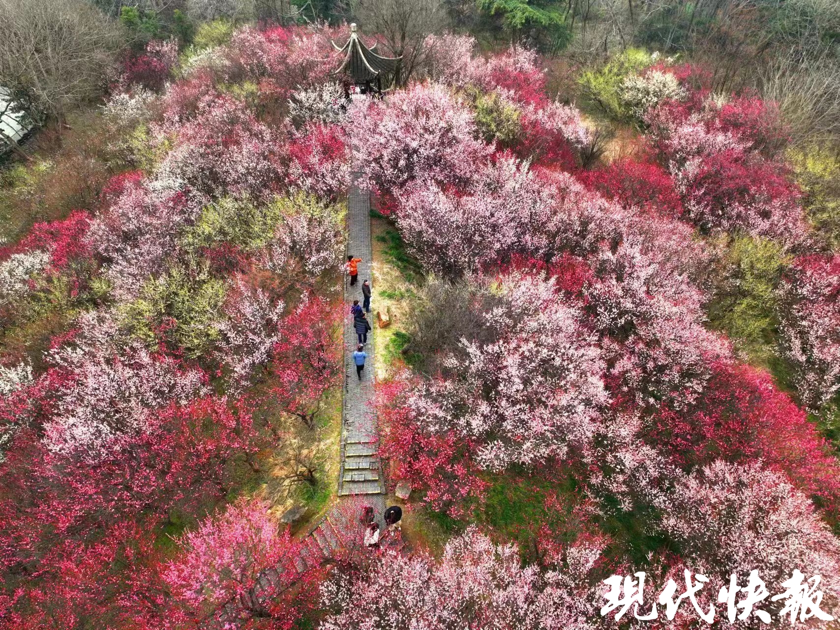 现代快报讯(记者顾潇)早春时节乍暖还寒,作为“二十四番花信风”之首的春梅竞相绽放。在扬州瘦西湖、茱萸湾等景区,处处都是梅花的倩影,吸引了大批市民前来观赏。现代快报记者在瘦西湖湖上梅林看到,多株江梅开出了六瓣梅花,非常罕见。