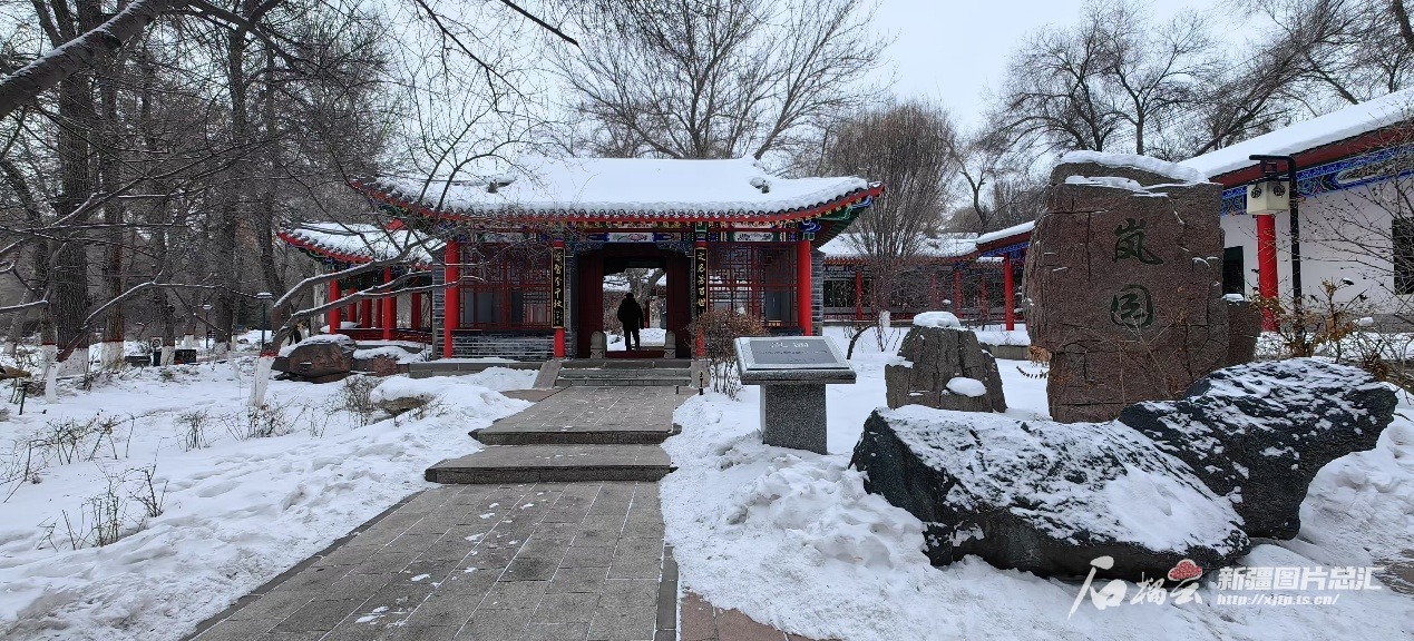 雪后的岚园,诗意盎然,成为了乌鲁木齐市民和游客们休闲、观光的好去处。