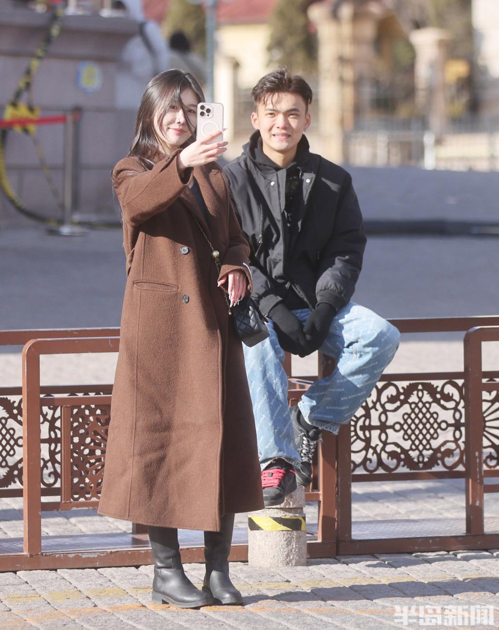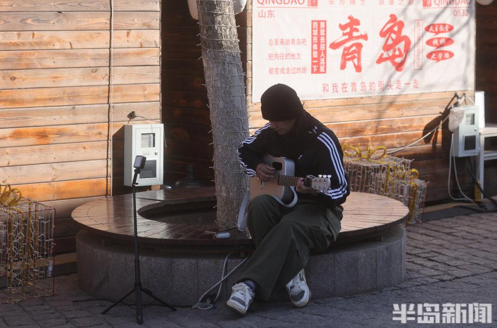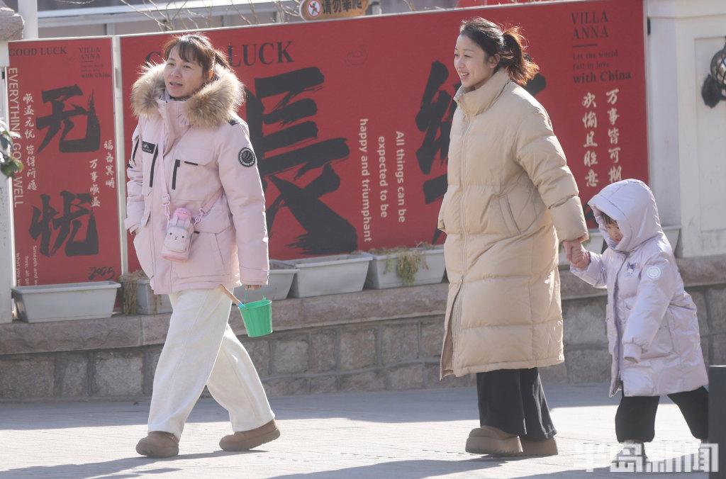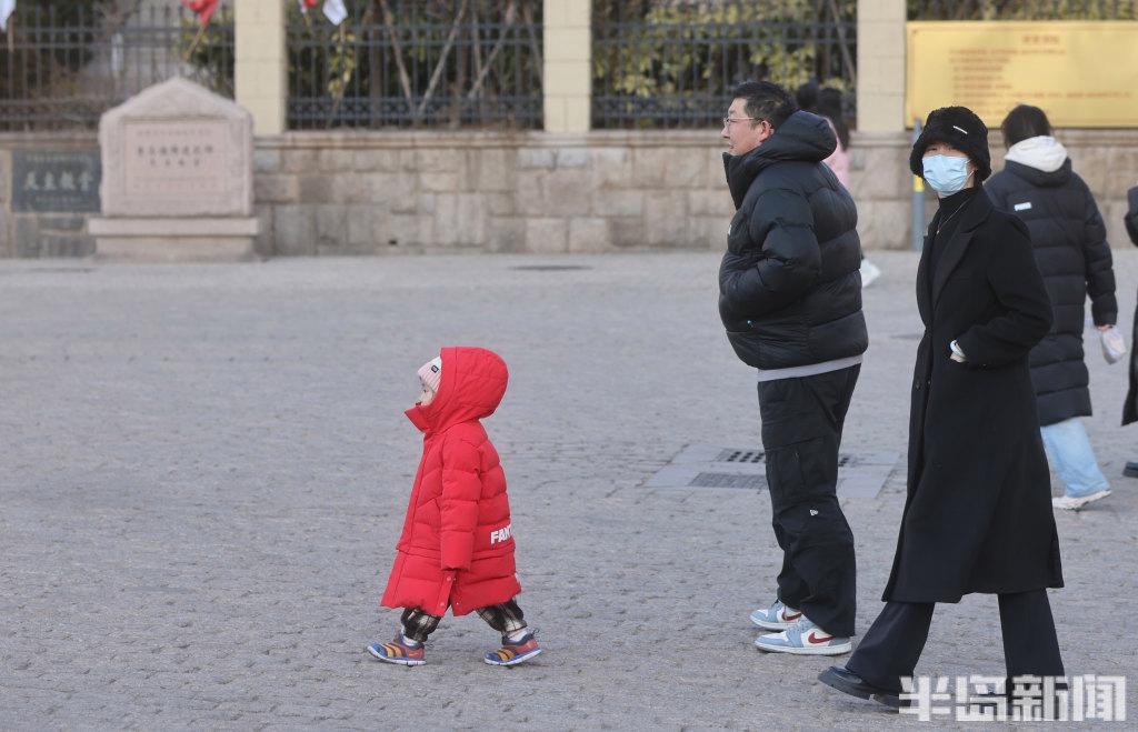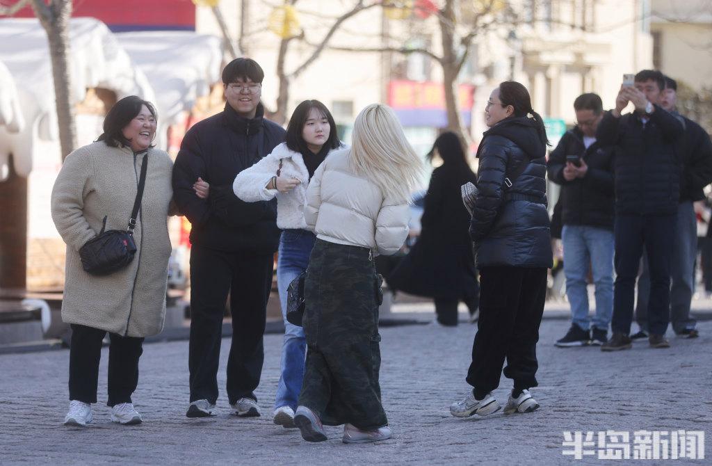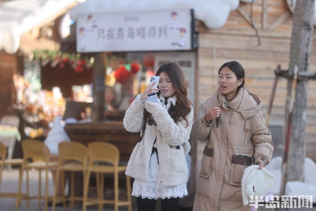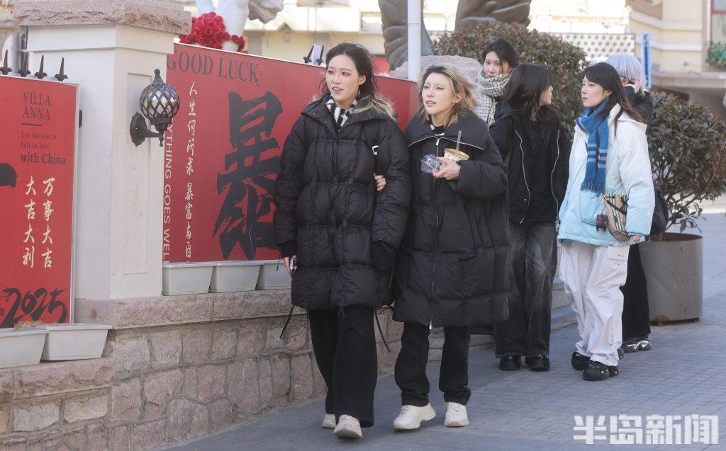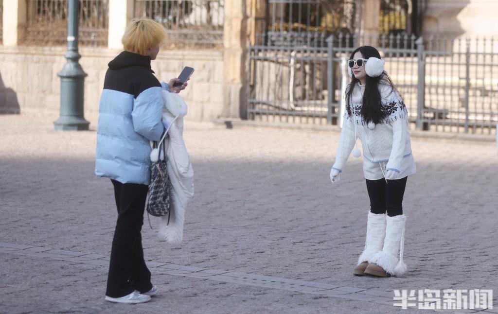 2月24日,青岛市南区浙江路上,许多游客在此拍照,虽然天气有些寒冷,但是仍挡不住他们对这里景色和建筑的热爱。游人们穿着厚羽绒服、顶着寒风喝着青岛啤酒,乐在其中。
