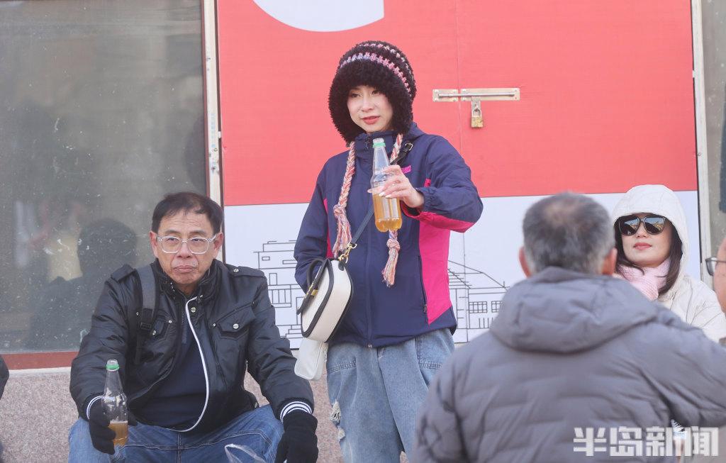 吹着寒风品尝青岛啤酒