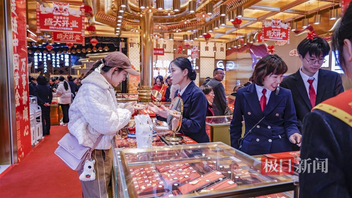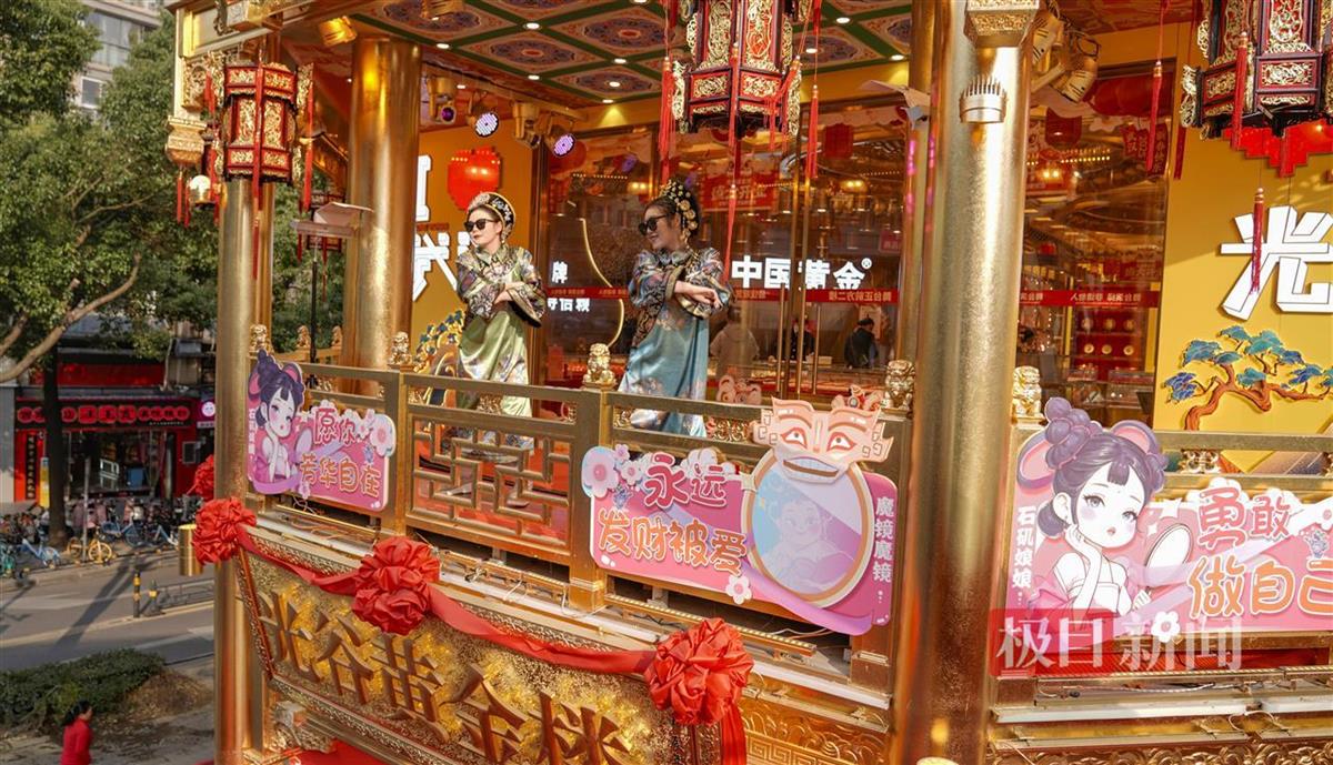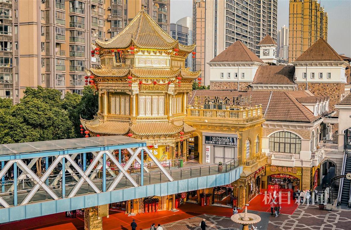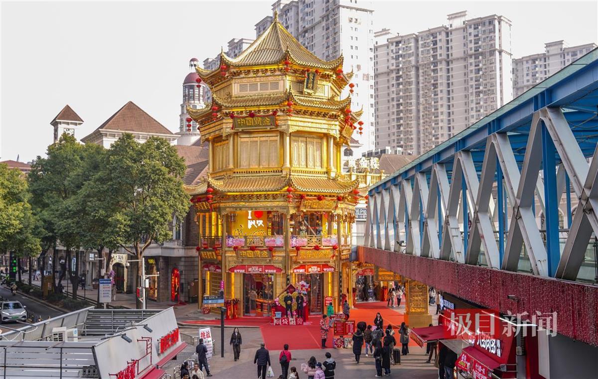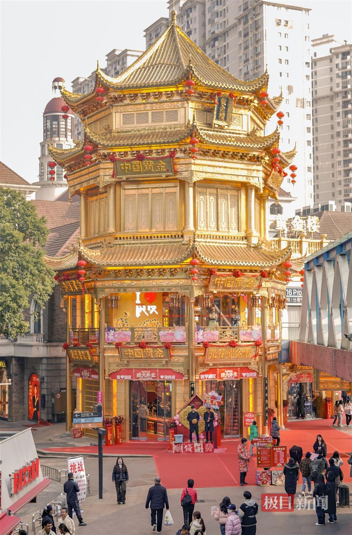 光谷步行街新近建起的黄金楼,成为武汉新的网红打卡地。2月25日,在春日的阳光下,光谷步行街黄金楼熠熠生辉,光彩夺目。据悉,这座位于西班牙风情街街口的黄金楼,由原来的商业楼改造而成。外观四层,外立面装饰得有传统的唐宋楼宇风格,楼、台、轩、廊、飞檐、翘角,在黄金色的装饰下,格外显眼,众多网友认为是黄金版“黄鹤楼”。