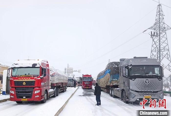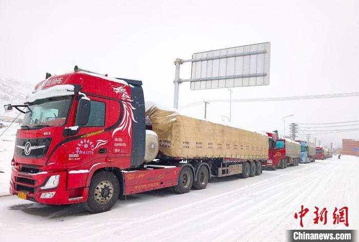 图为久治县高速入口车辆滞留。青海省气象局供图