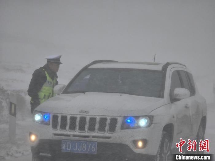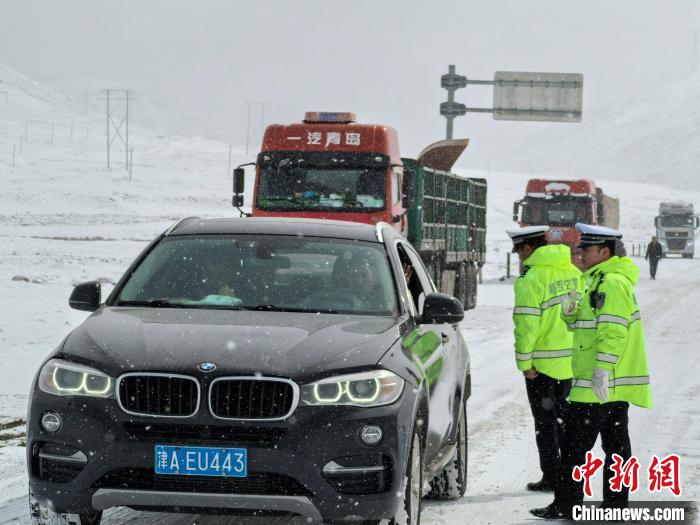 图为交警与滞留车辆司机沟通。茫崖市公安局供图