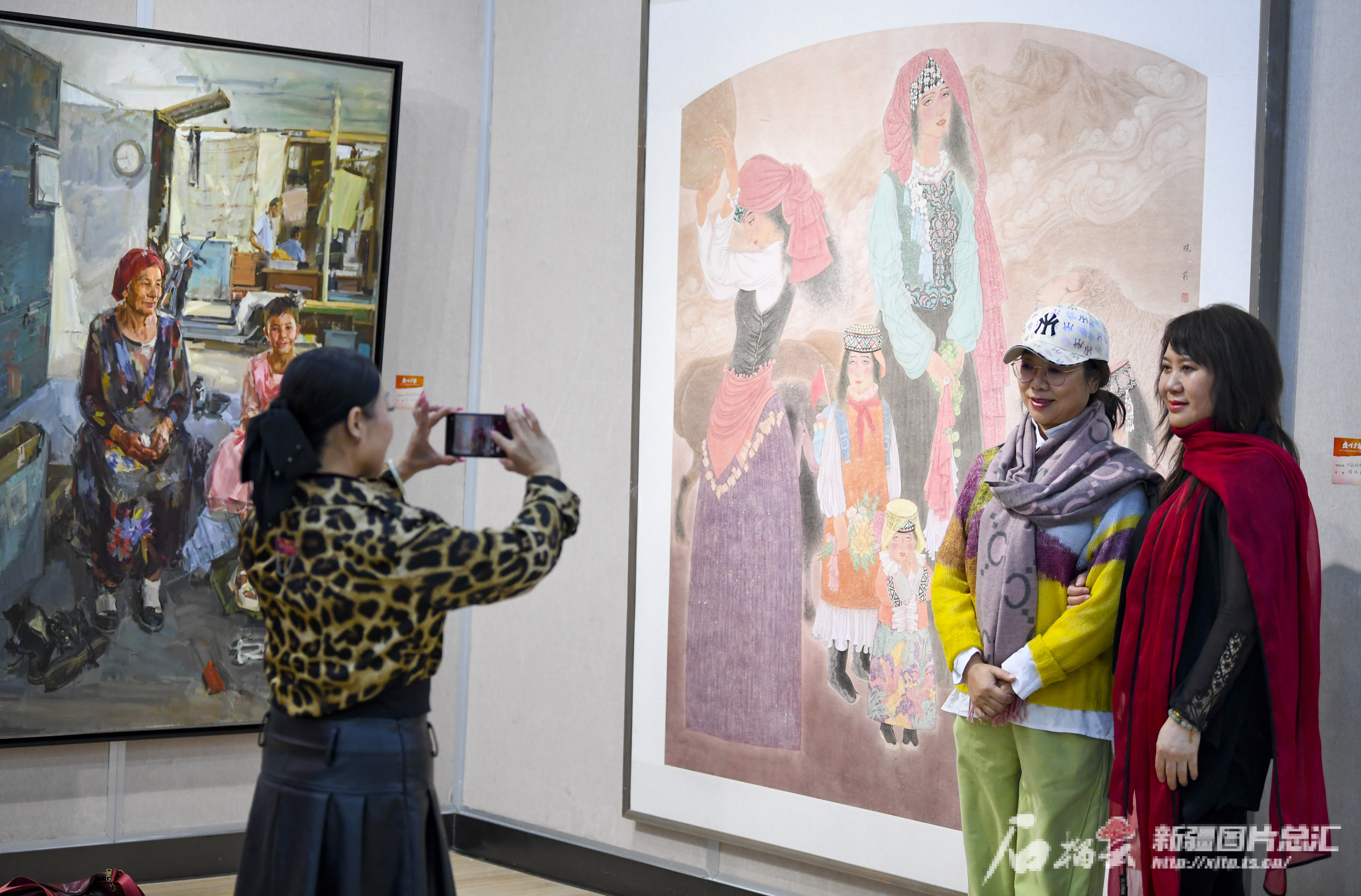 3月8日,“盛世芳华——2025年全国女画家美术作品精品展”在新疆文联展厅开展。