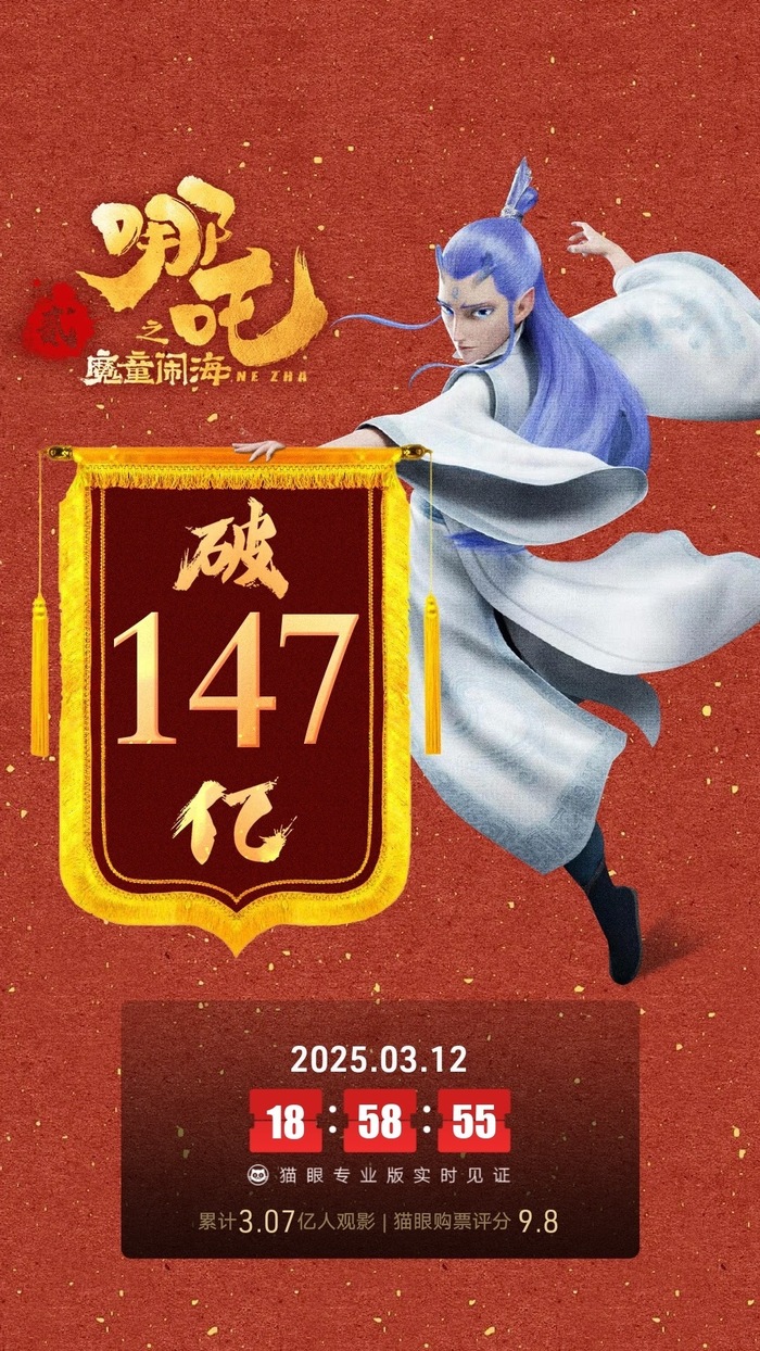 《哪吒之魔童闹海》票房突破147亿
